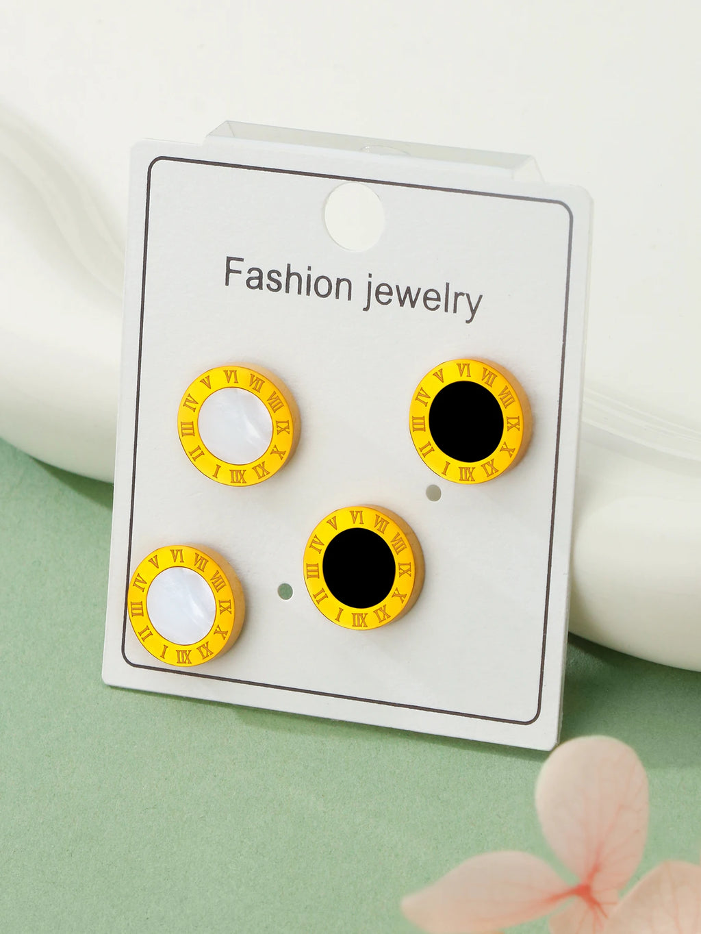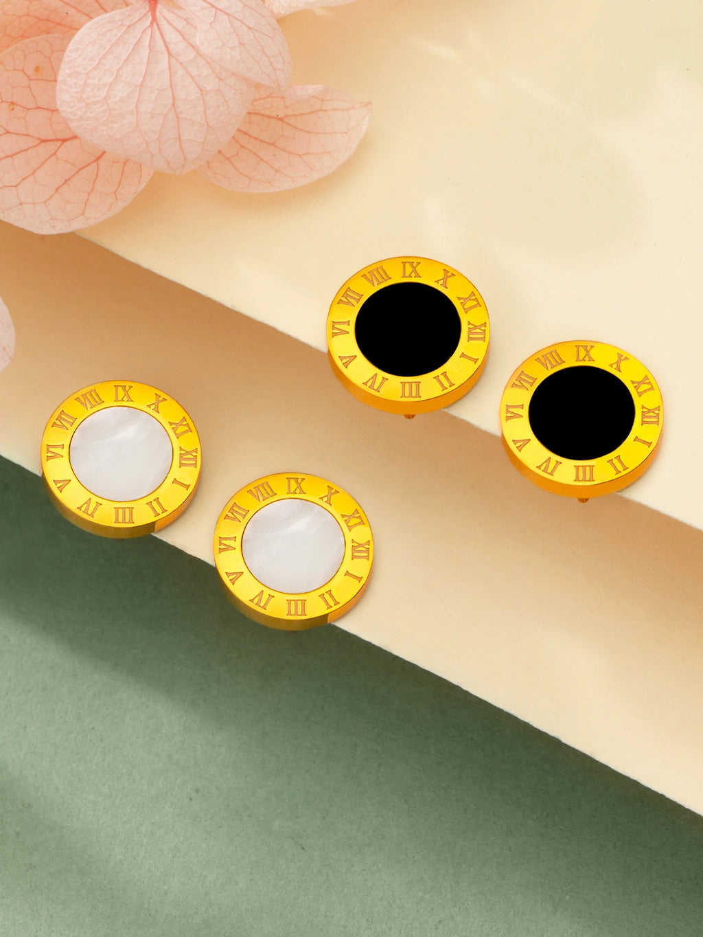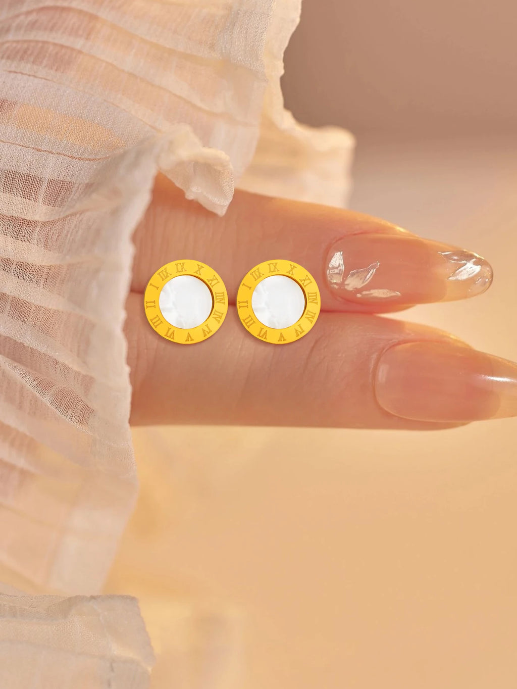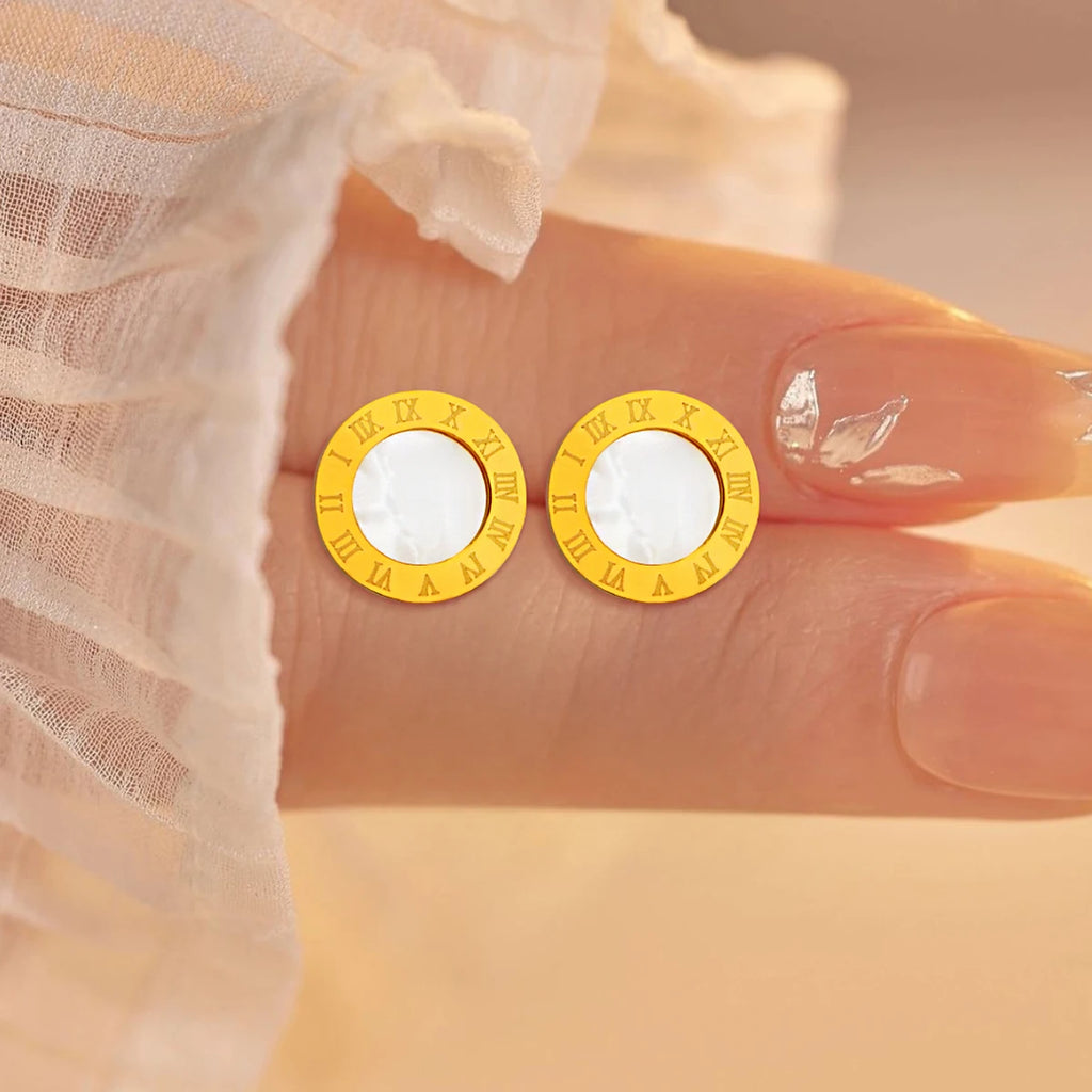 2pcs Non Fading Fashion Roman Numeral Round Earring European and American High-end Men Women Charm Stainless Steel Stud Earrings