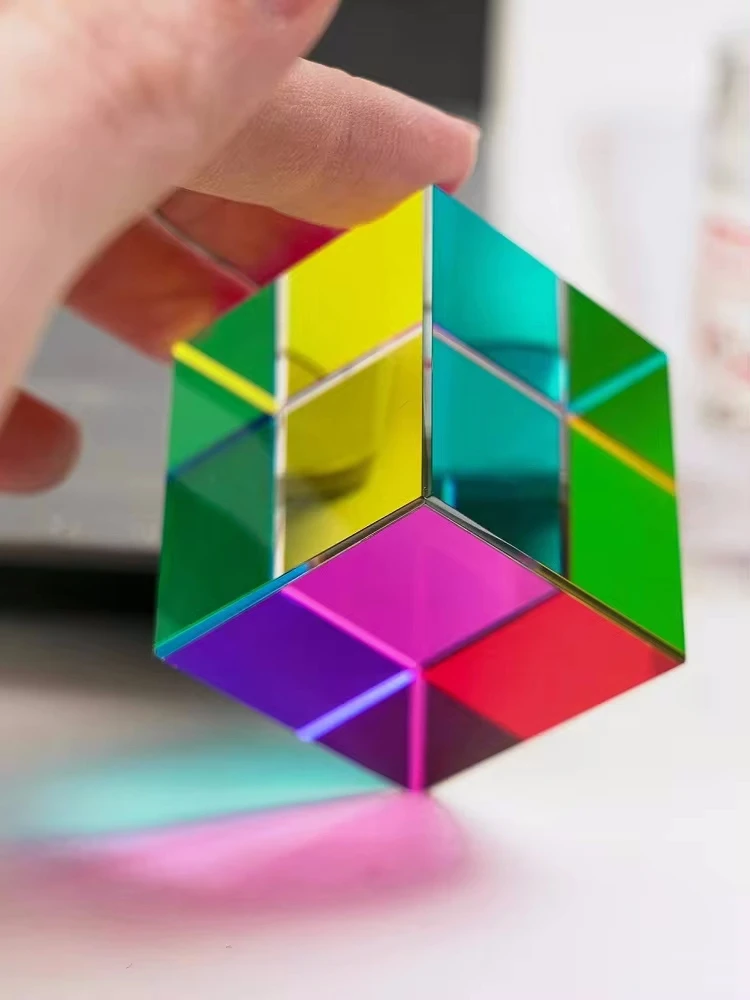 40mm (1.57 Inches) Color Cube Prism Three Primary Colors Popular Science Optical Color Experiment Toys Home Color Neocubes Toy