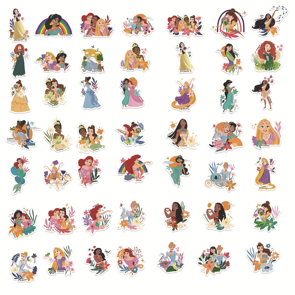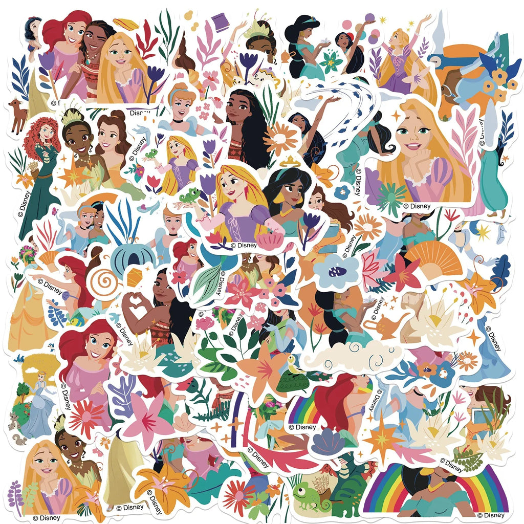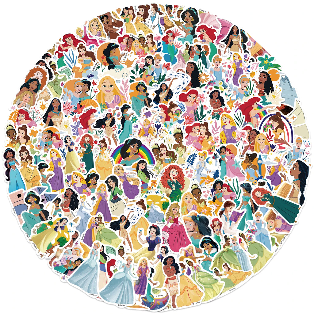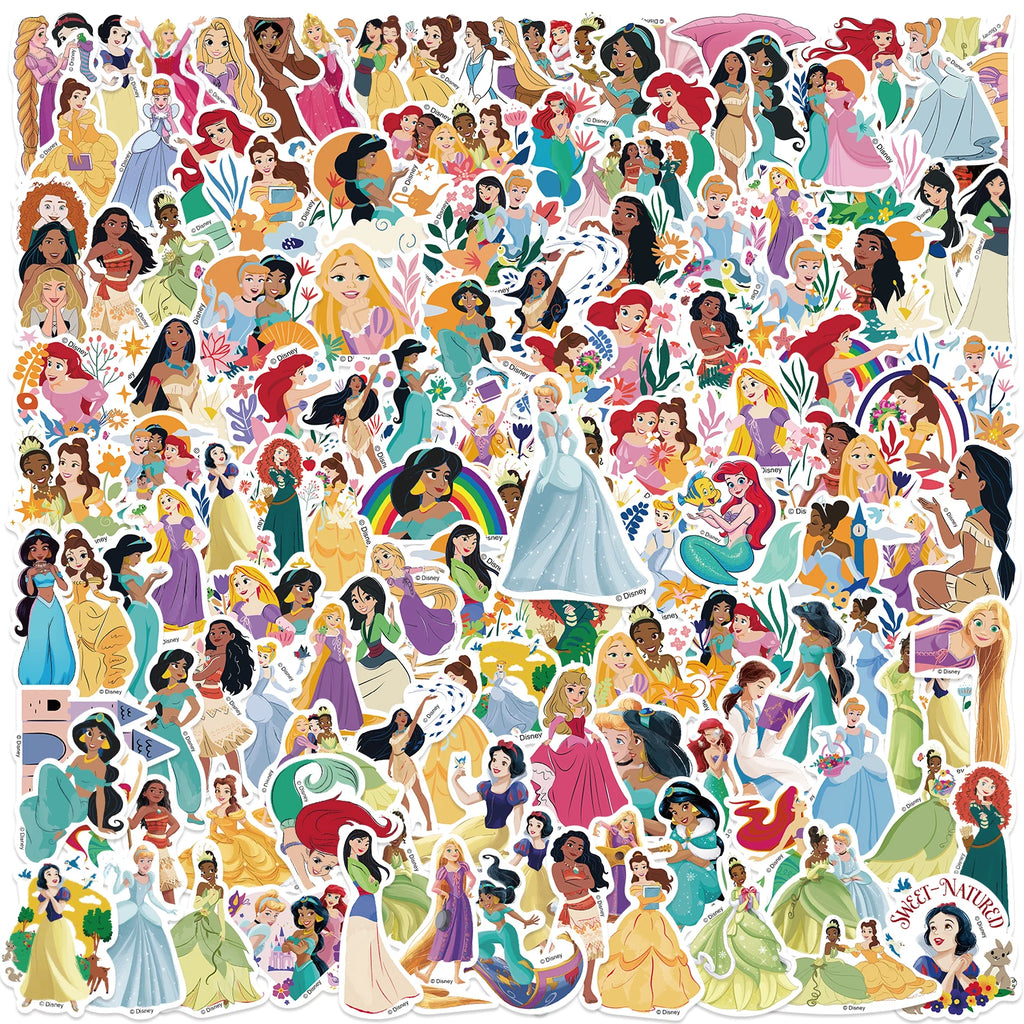 50/100/150PCS Disney Princess Mixed Stickers Waterproof Graffiti Phone Laptop Luggage Guitar Notebook Cartoon Stickers Kids Toys