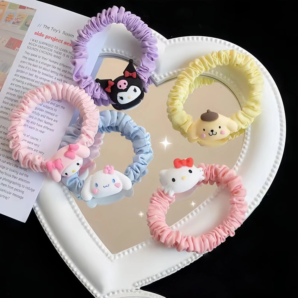 5Pcs Sanrio Hello Kitty Hair Rope Cartoon Anime Cute Kuromi Cinnamoroll HairBand Fashionable Hair Accessories Girl&Holiday Gift