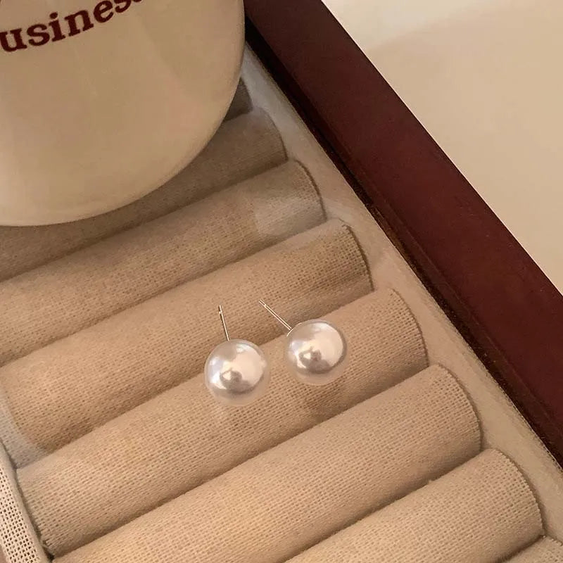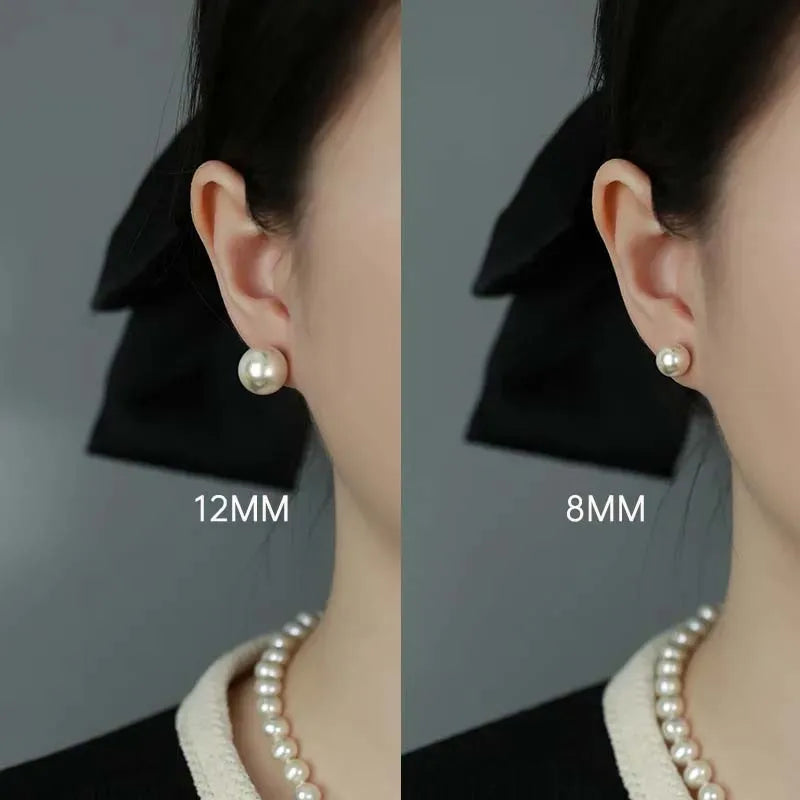 6/8/10/12/14mm White Glossy Pearl Stud Earrings for Women Exquisite Elegant Imitation Pearl Round Earring Wedding Jewelry Gift