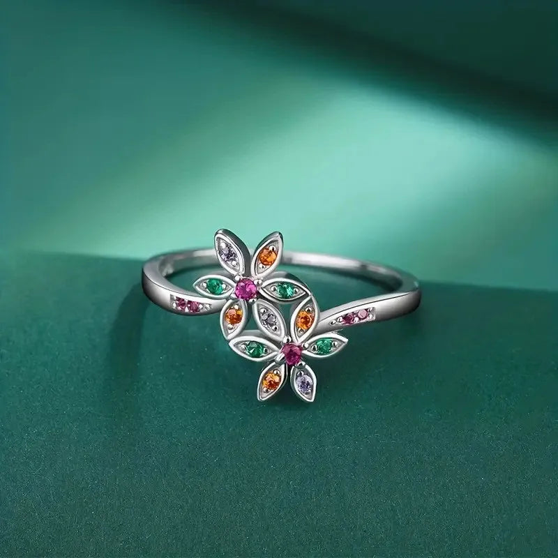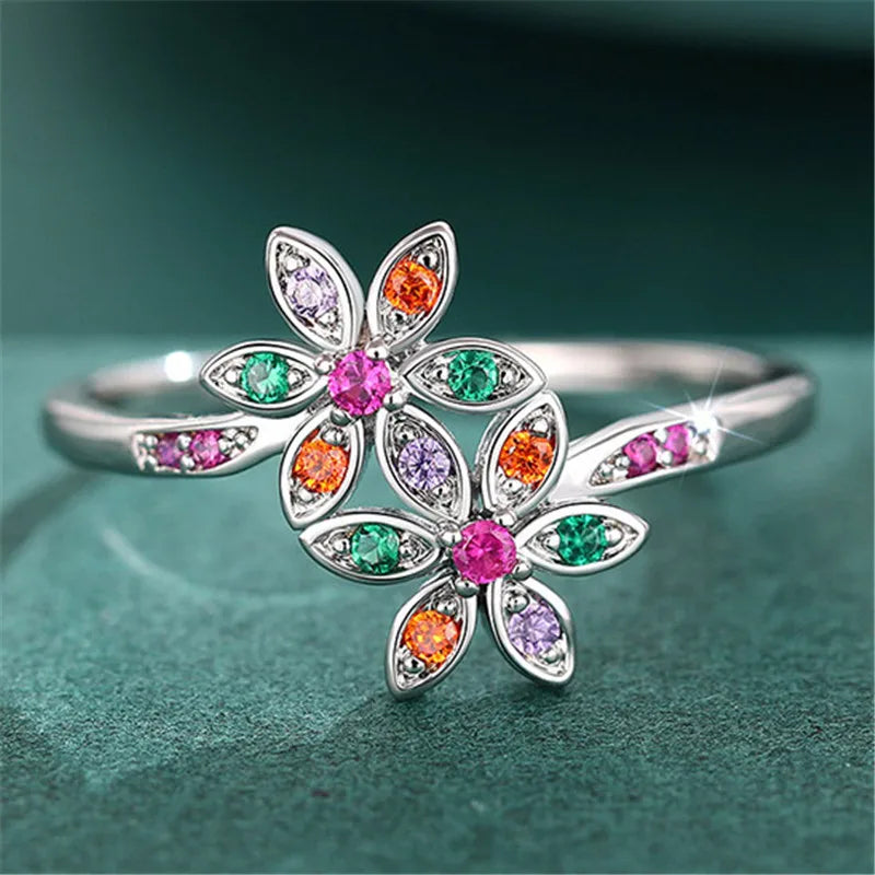 925 Sterling Silver Double Flower Finger Ring for Women Female Bright Zirconia Wedding Jewelry Gifts