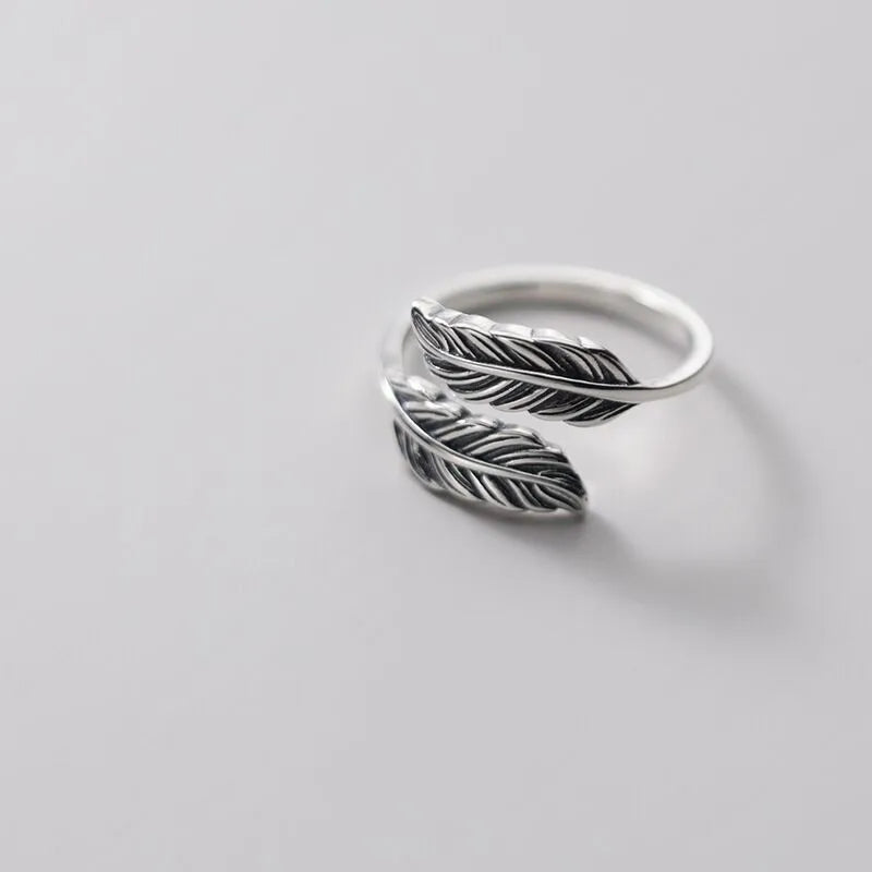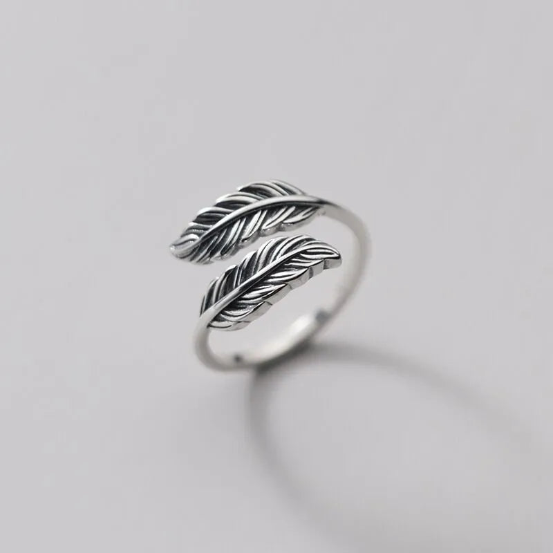 925 Sterling Silver Feather Adjustable Rings For Women Vintage Wedding Luxury Quality Jewelry Accessories With