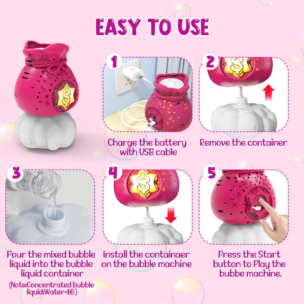 Blizzard Dollar Bag Bubble Machine,Brilliant Light & Automatic Bubble Maker Blower,Fun Bubble Gun Toy,Indoor Outdoor Bubble Toy for Kids & Toddlers,Birthday Party Gifts for Boys & Girls Age 3+ Years