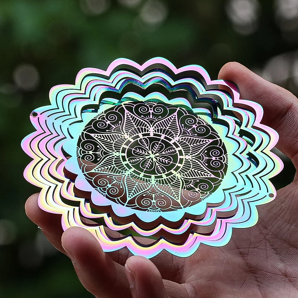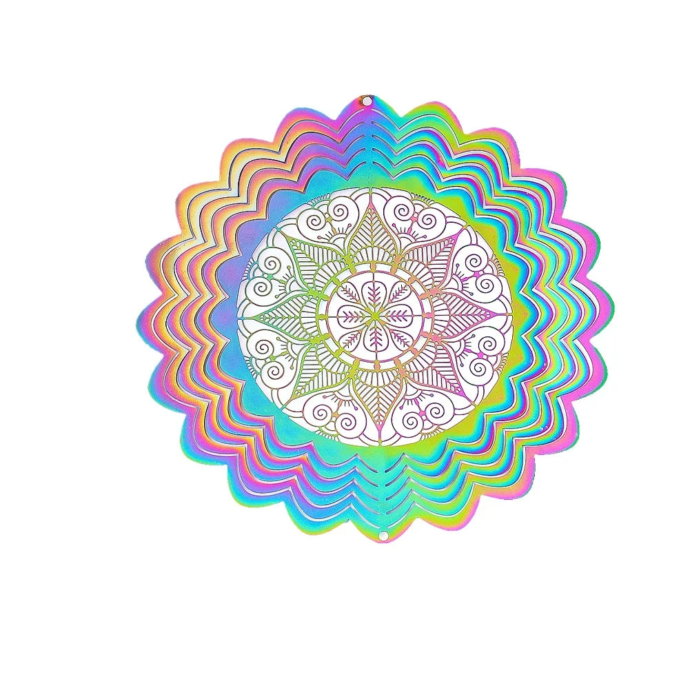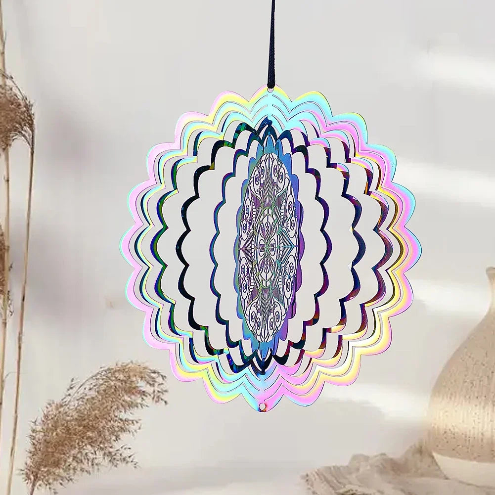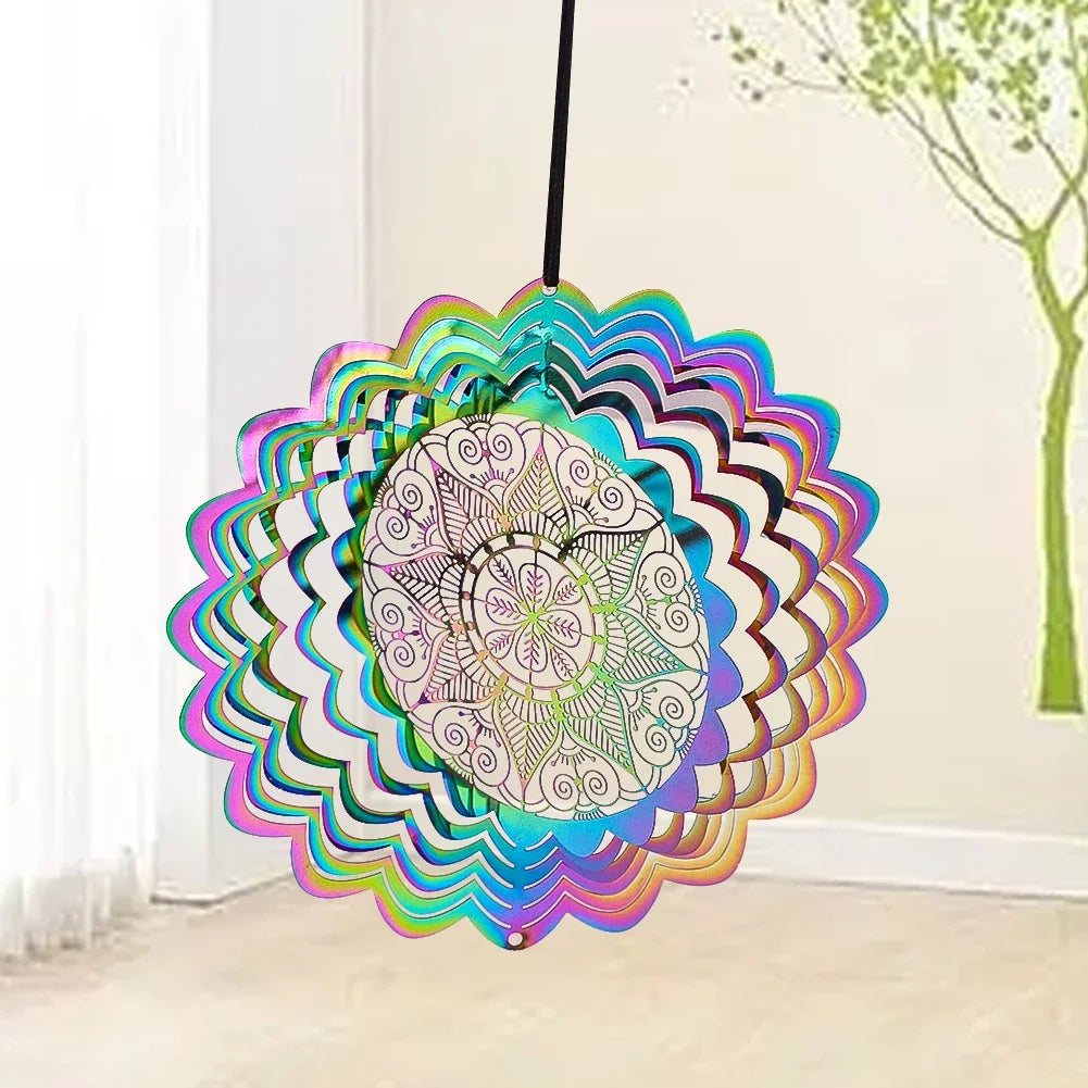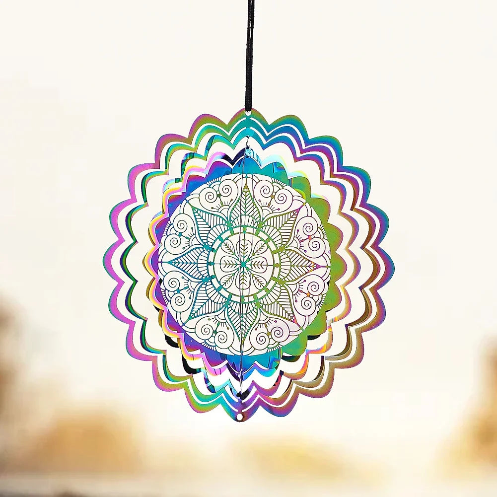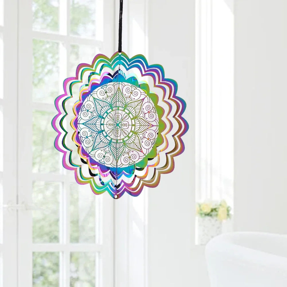 Colorful 3D Mandala Wind Spinner Flower Rotating Wind Chimes Suncatcher Flowing Whirling Visual Effect Yard Garden Hanging Decor