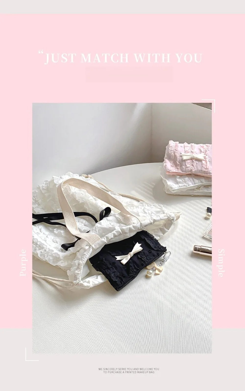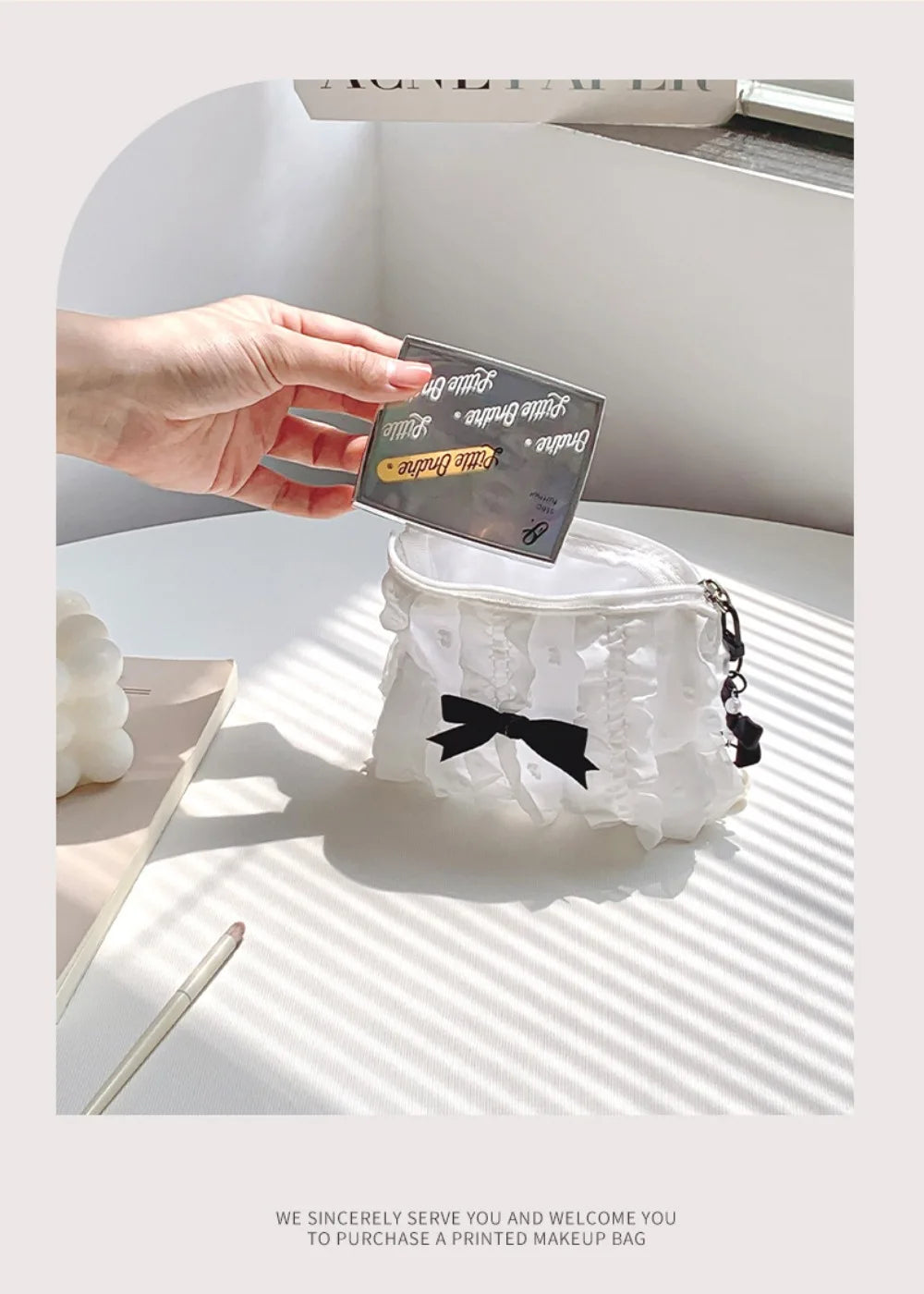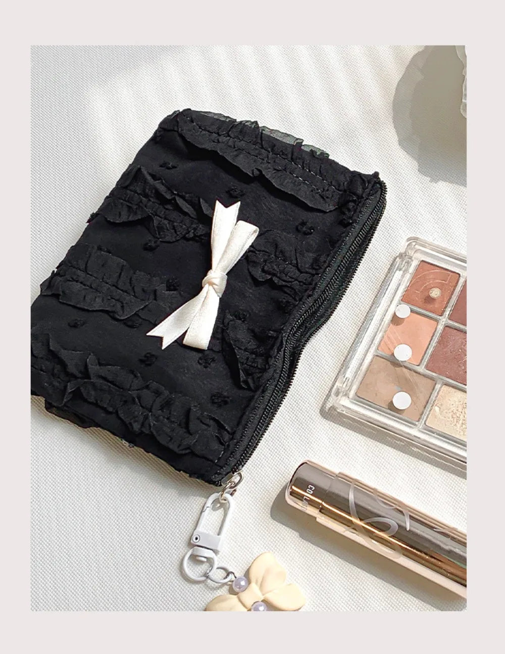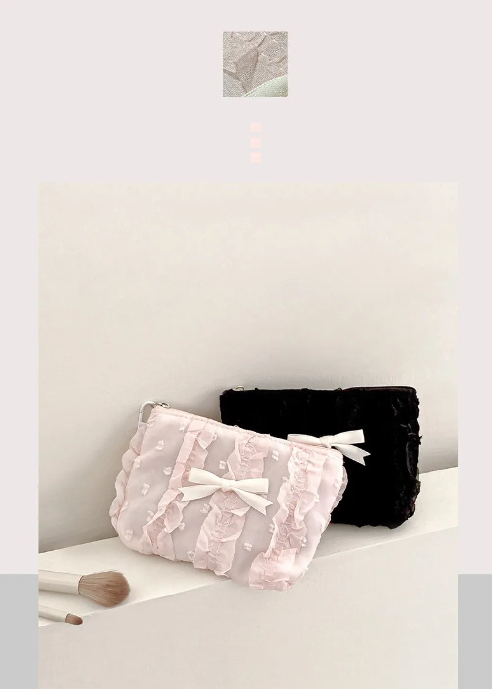 Cute Women Makeup Mini Bag Korean Lace Bow Portable Coin Purse Small Pouch Handbag Kawaii Female Cosmetic Storage Zipper Bag