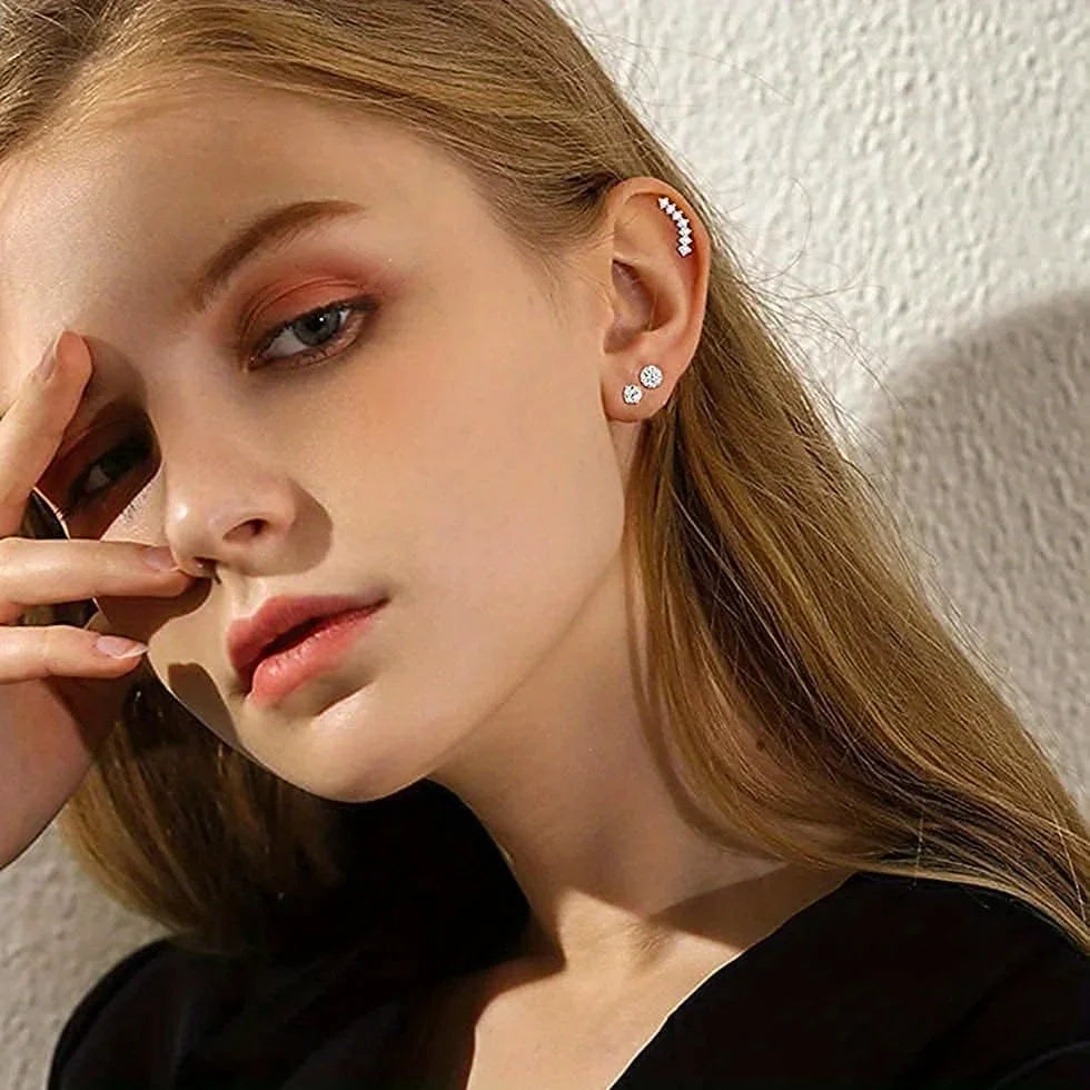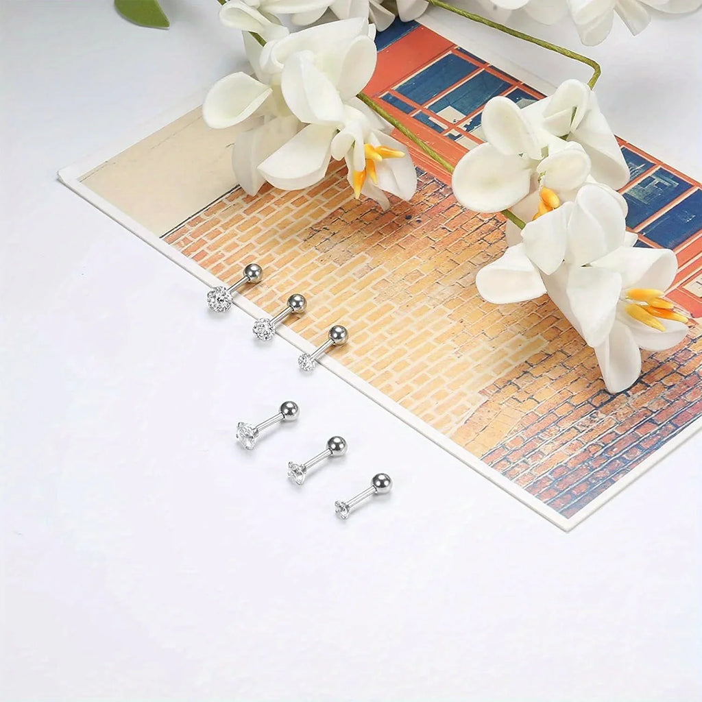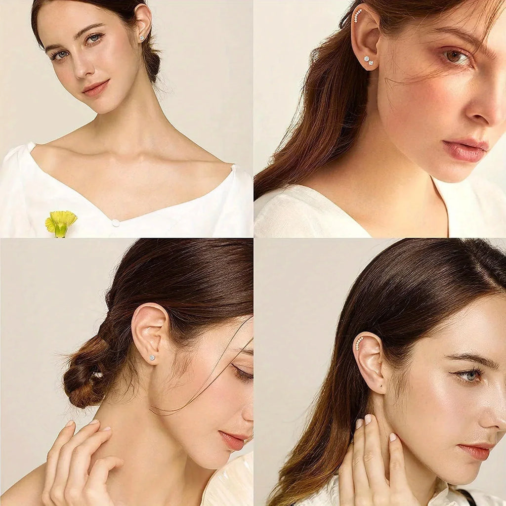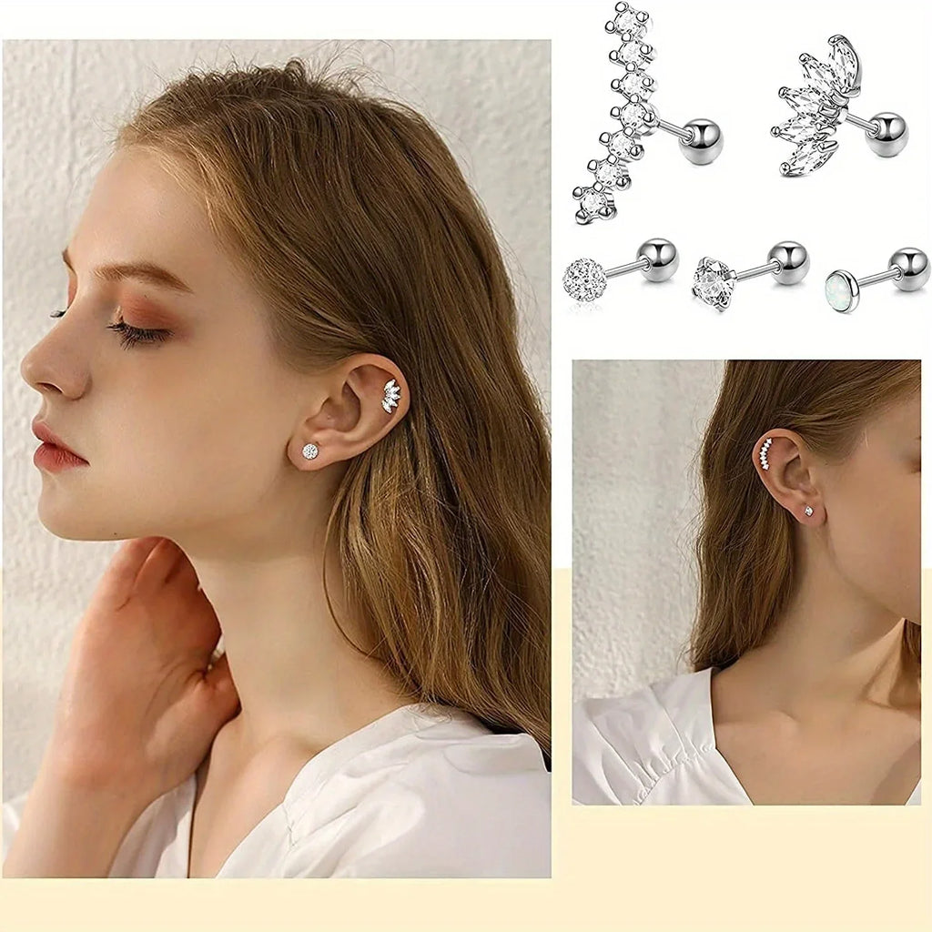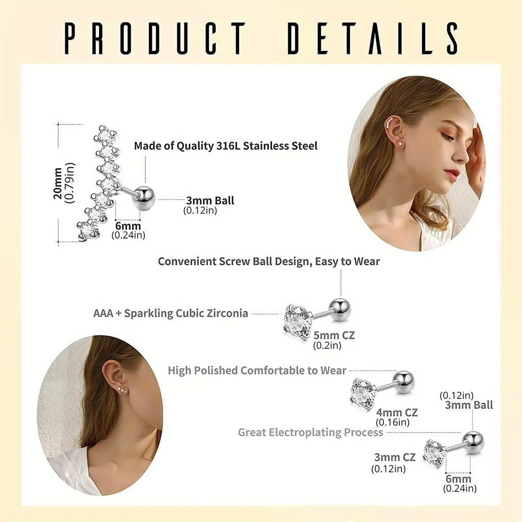 Drperfect Ear Cartilage Stainless Steel CZ Earrings Ball Helix Earrings Studs Set for Women Men Tragus Earring Piercing Jewelry