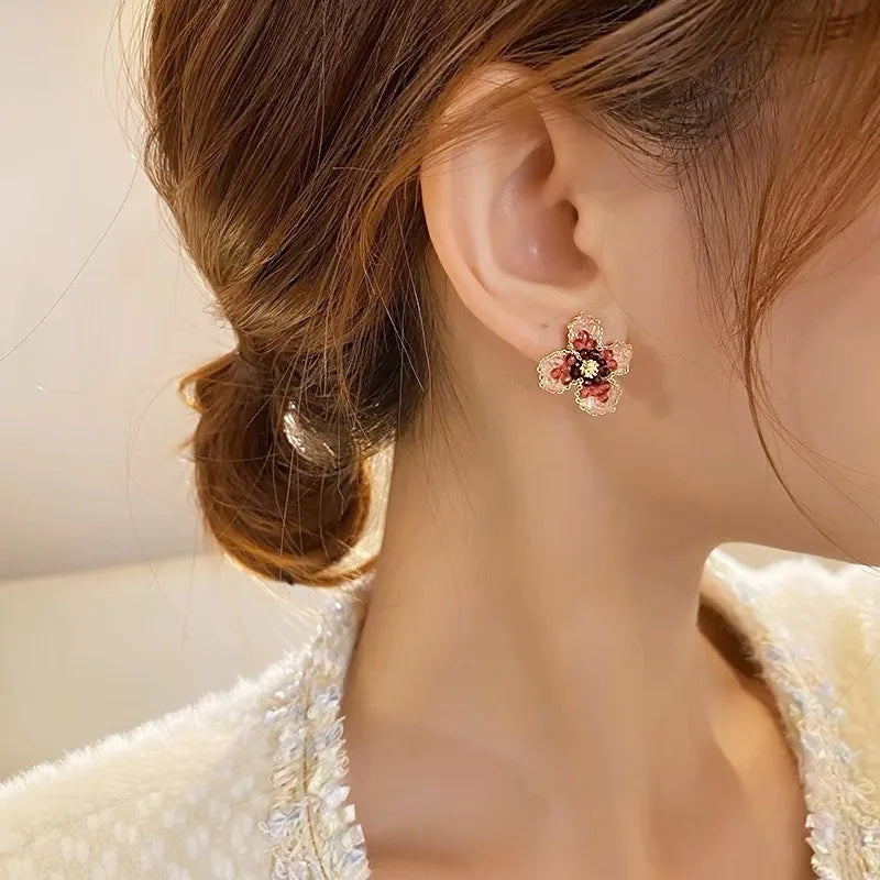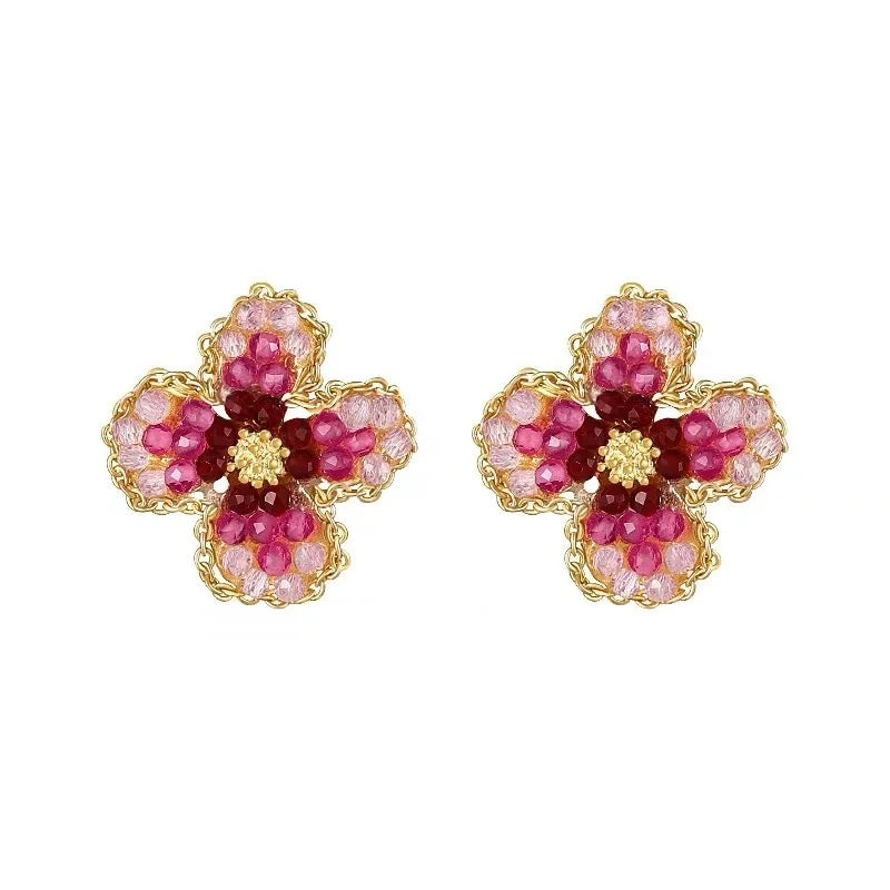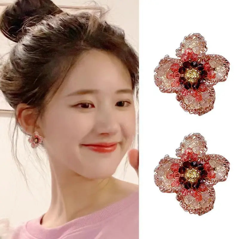 Fashion Exquisite Flower Zircon Stud Earrings For Women Geometric Rhinestone Earring Girl Party Birthday Christmas Jewelry Gifts