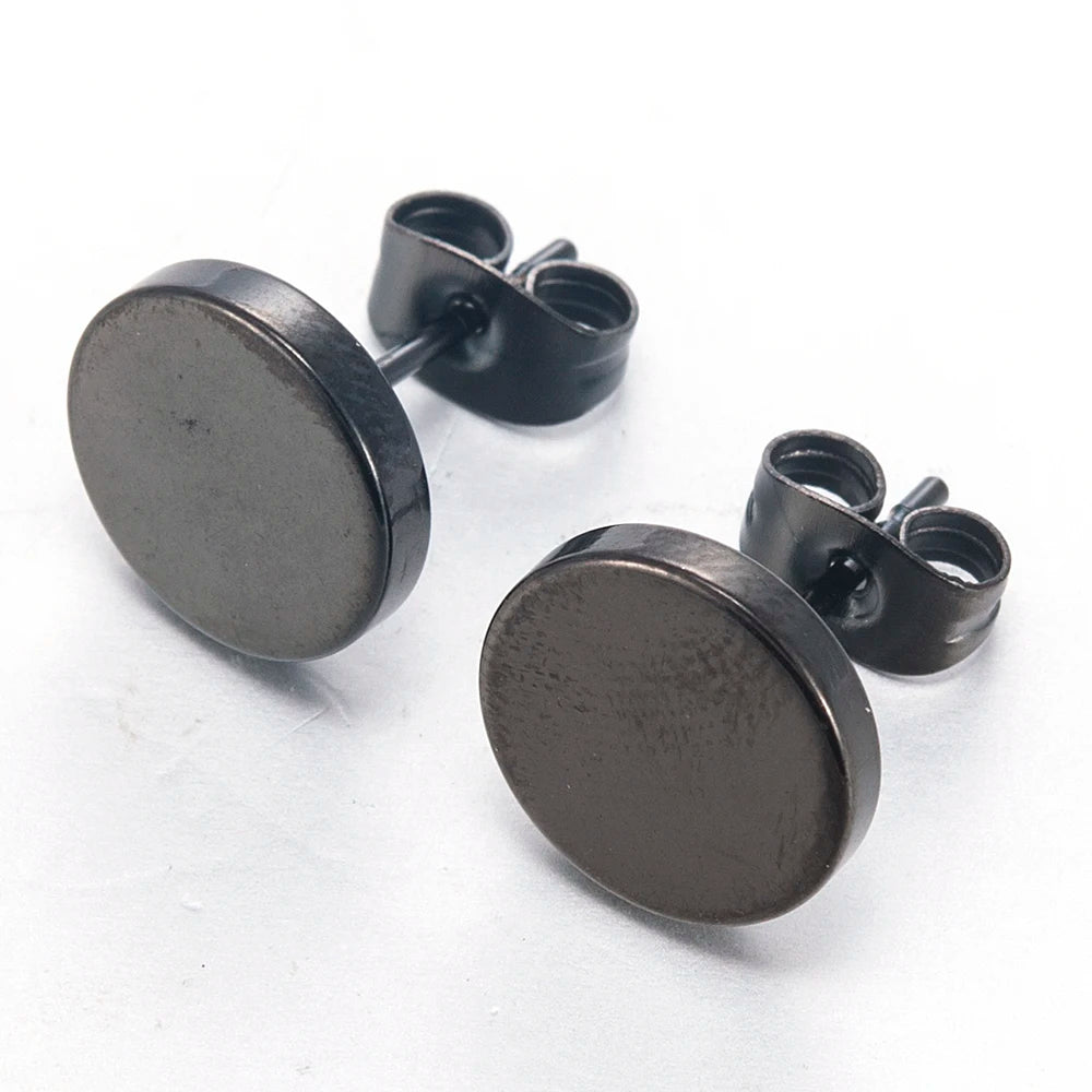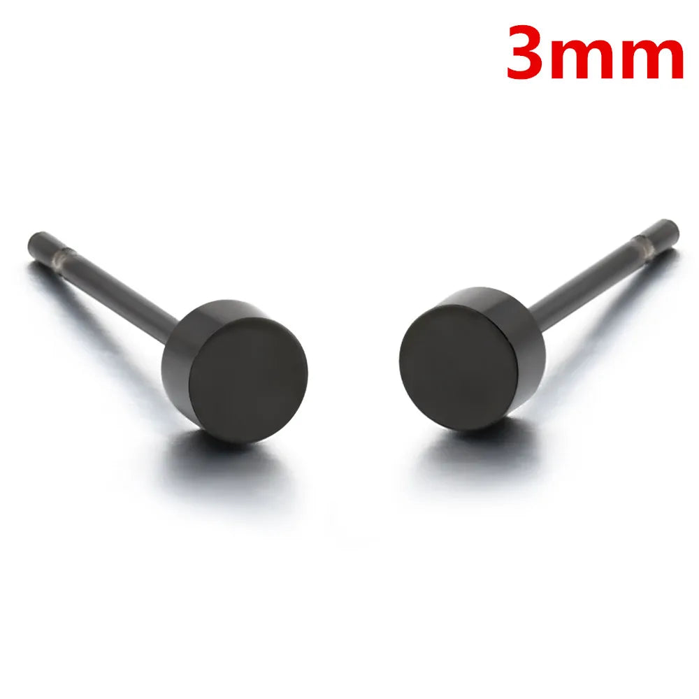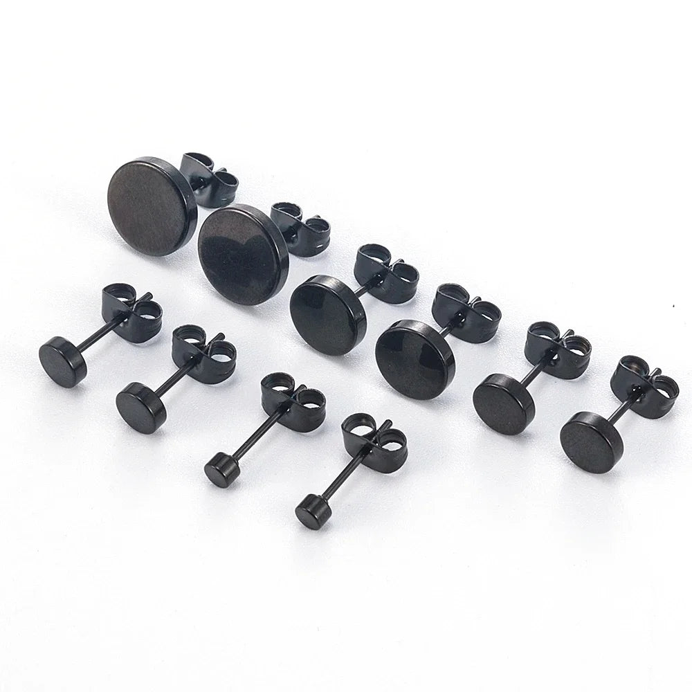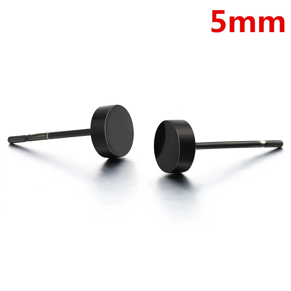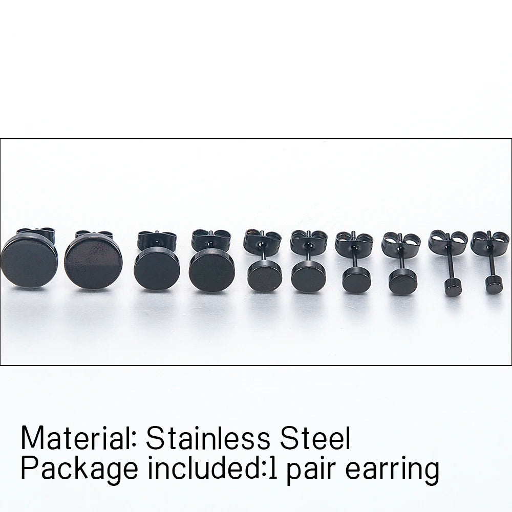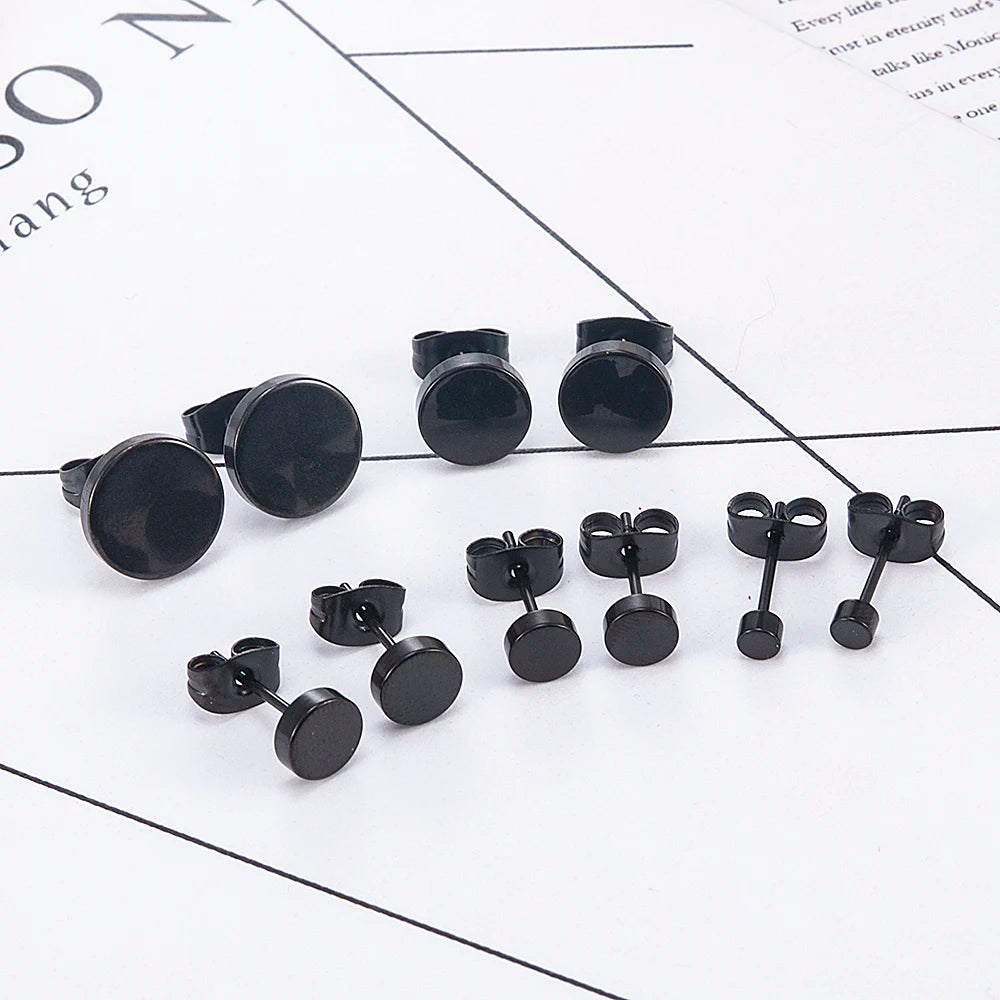 Fashion Women Men Black Round Stainless Steel Simple Ear Studs Earrings 5 Size Punk Earring Jewelry