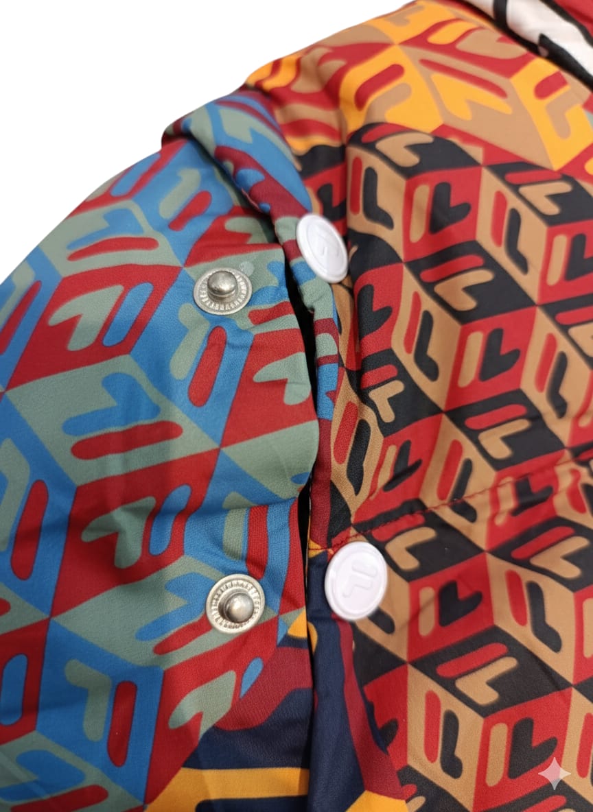 FILA Women's Marina Snapoff Silver Crop Puffer Jacket combines contemporary style with practical versatility. This sleek puffer features a removable silver accent panel that transforms your look from season to season. the sleeves can be removed and reattached. The cropped silhouette flatters modern proportions while the lightweight insulation keeps you warm without bulk. Snap-off design elements add an innovative touch, allowing you to customize your jacket to match your mood and wardrobe. Perfect for layering or wearing solo, this piece elevates casual outfits with understated elegance and functional design.
