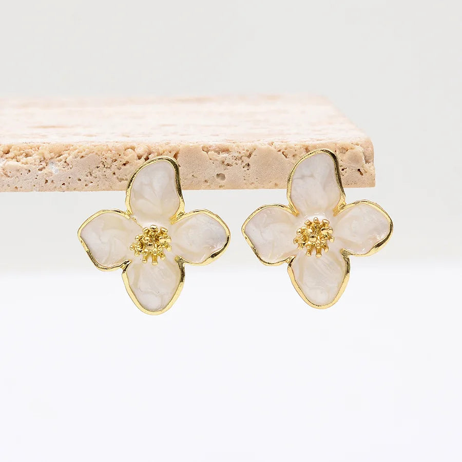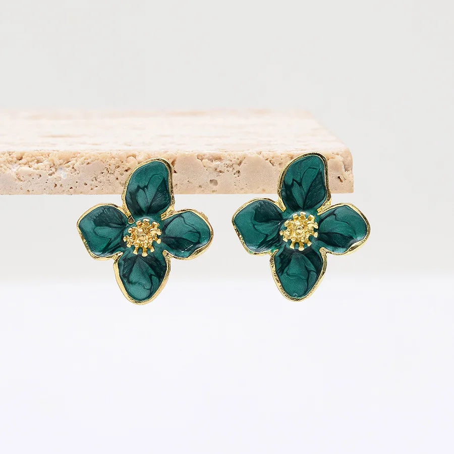 Flower Earrings Stud Green White Flowers Women Earring Post Spring Summer New Trendy Girls Cute Jewelrys