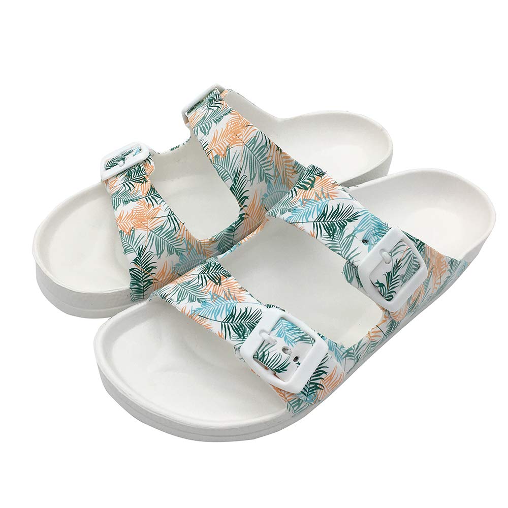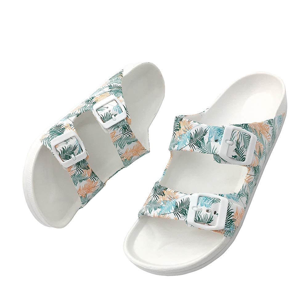 FUNKYMONKEY Women's Comfort Slides Double Buckle Adjustable EVA Flat Sandals