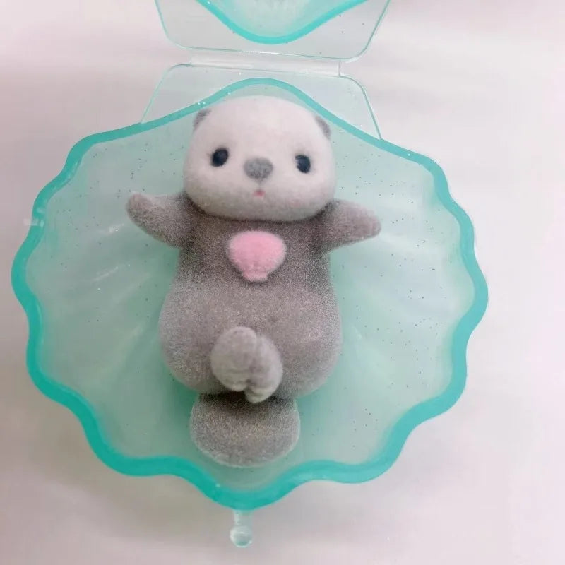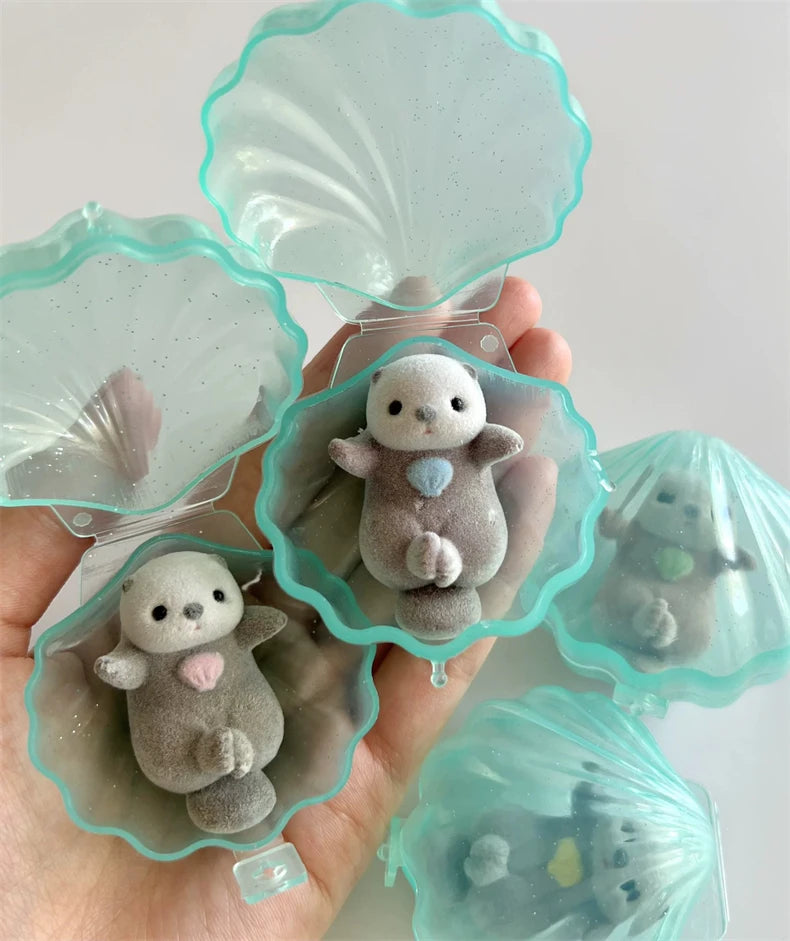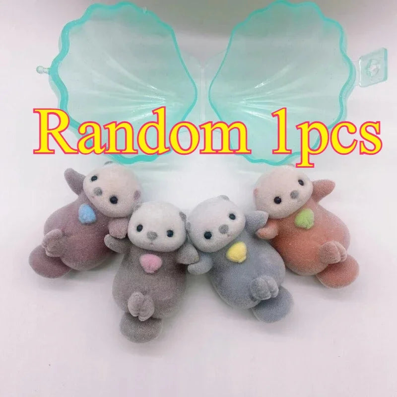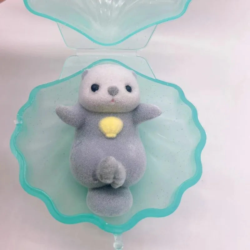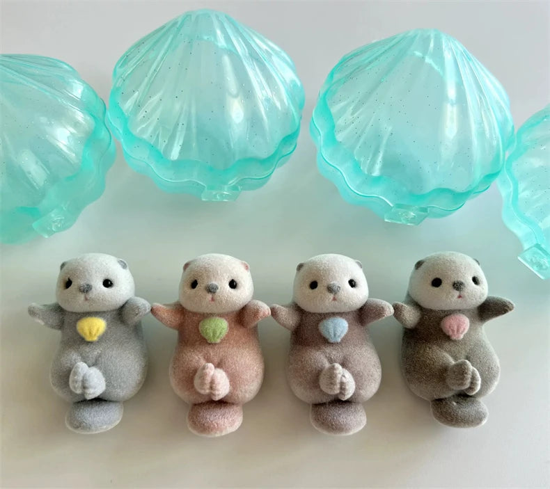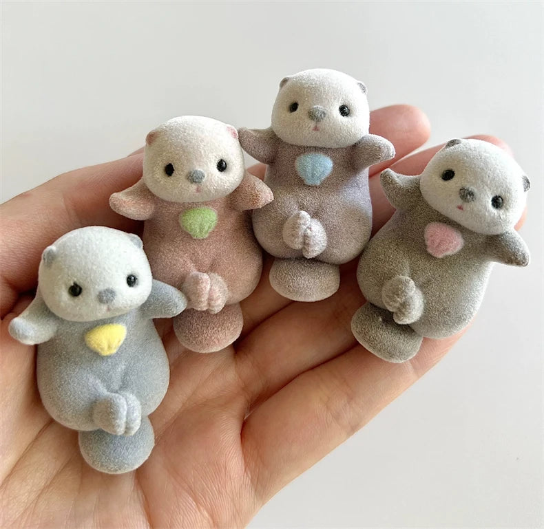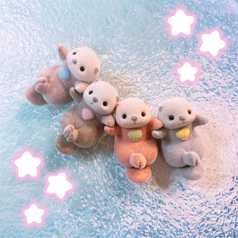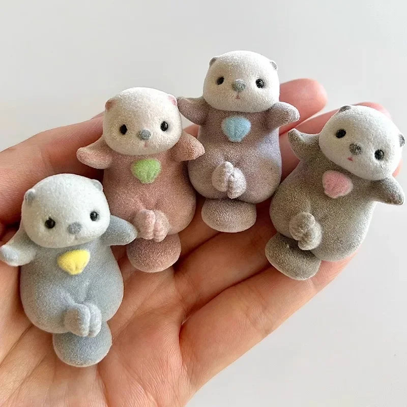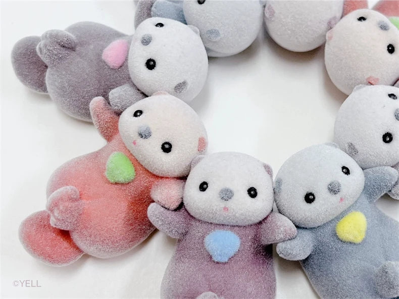 Genuine YELL Gashapon Capsule Toy Flocking Hand in Hand Otter Kawaii Animals Figures Model Toy Desktop Decoratoion Kids Gifts