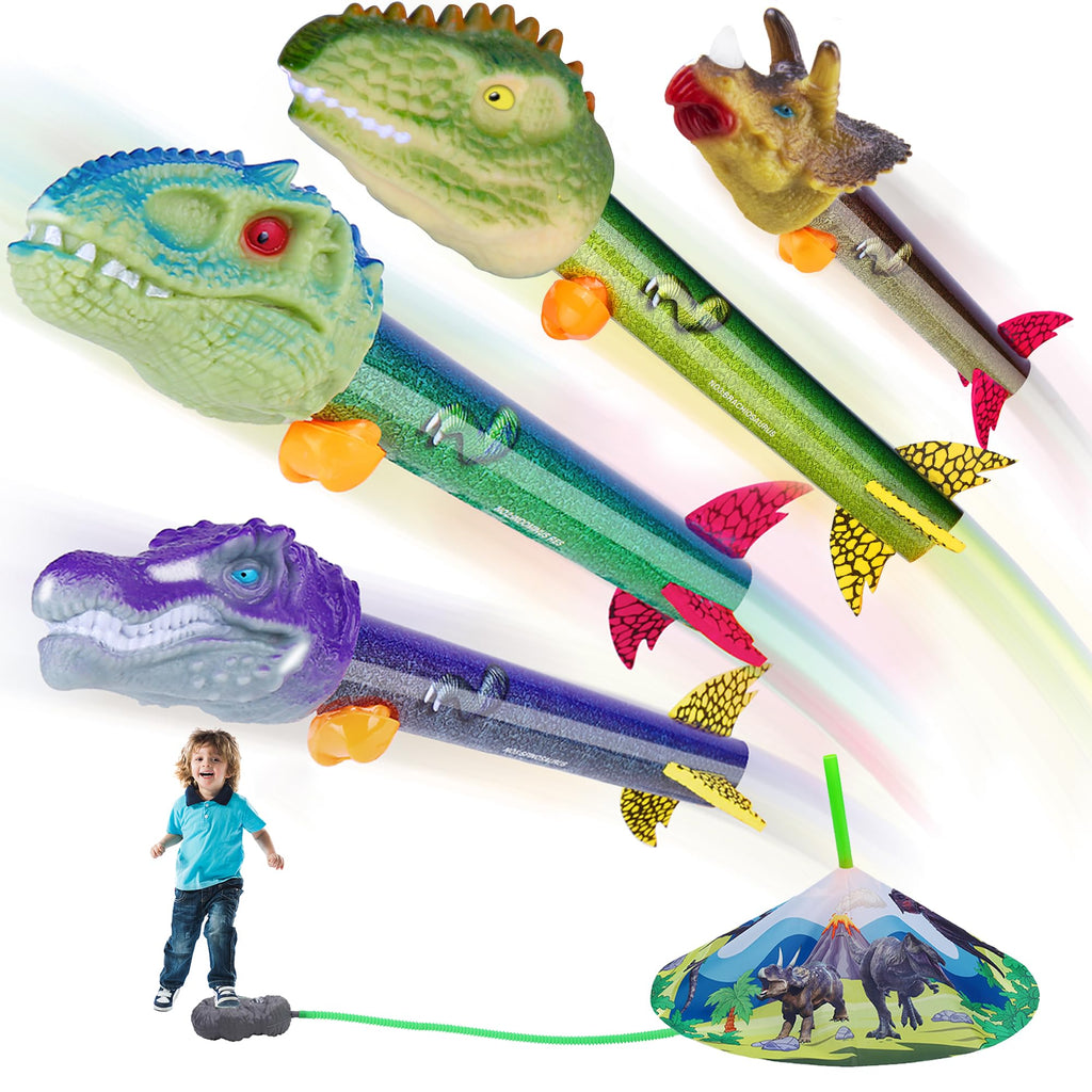 Gizzjoy Dinosaur Toy Rocket Launcher for Kids - Launch Up to 100 Ft, 4 Rockets, Outdoor Outside Toys for Kids, Dinosaur Toys, Birthday Gifts for 3 4 5 6 7 8-12 Year Old Boys Girls