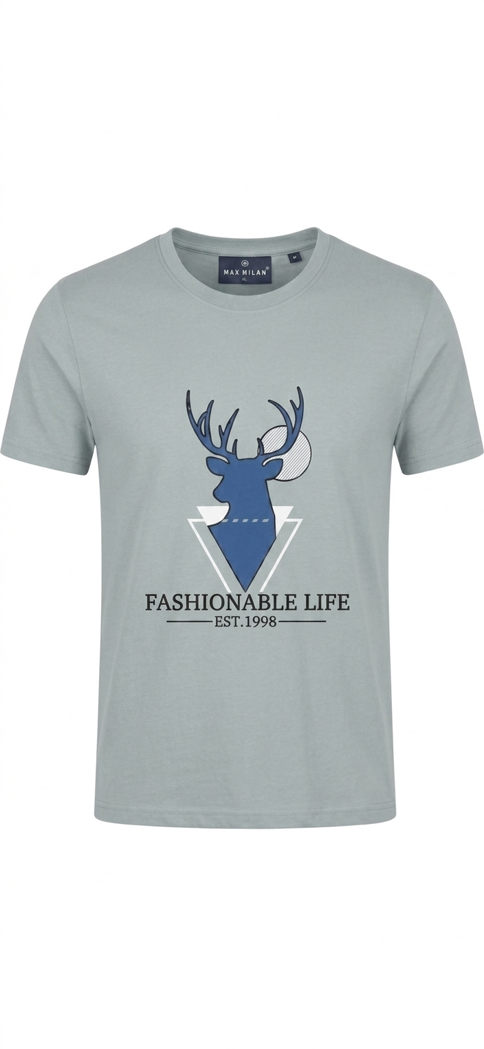 The MAX MILAN Light Blue Printed T-Shirt for men features a contemporary design, crafted from high-quality materials that ensure durability and comfort. Its breathable fabric composition aids in moisture management, offering a practical solution for everyday wear. The stylish print enhances visual appeal, making it suitable for various casual settings.