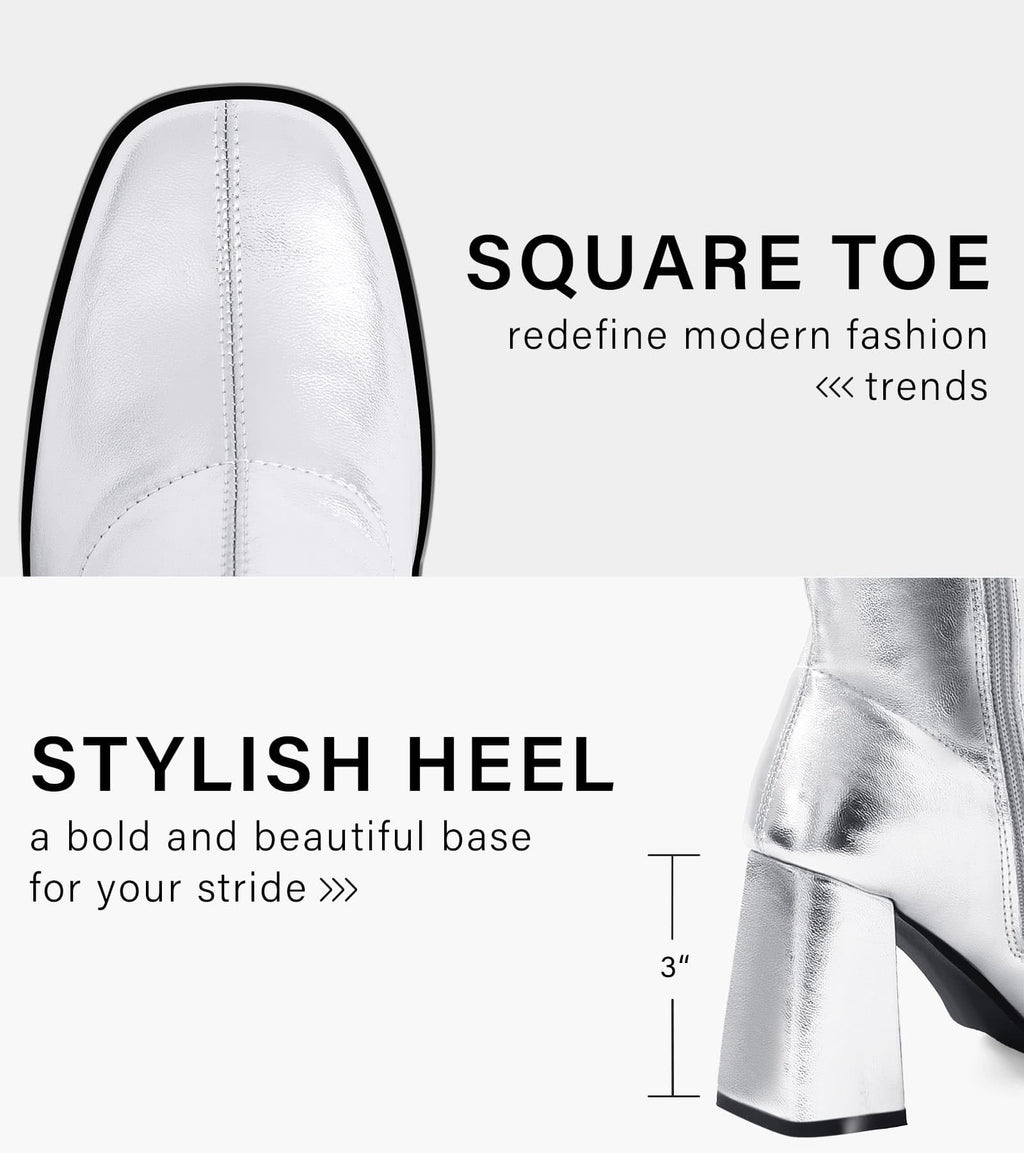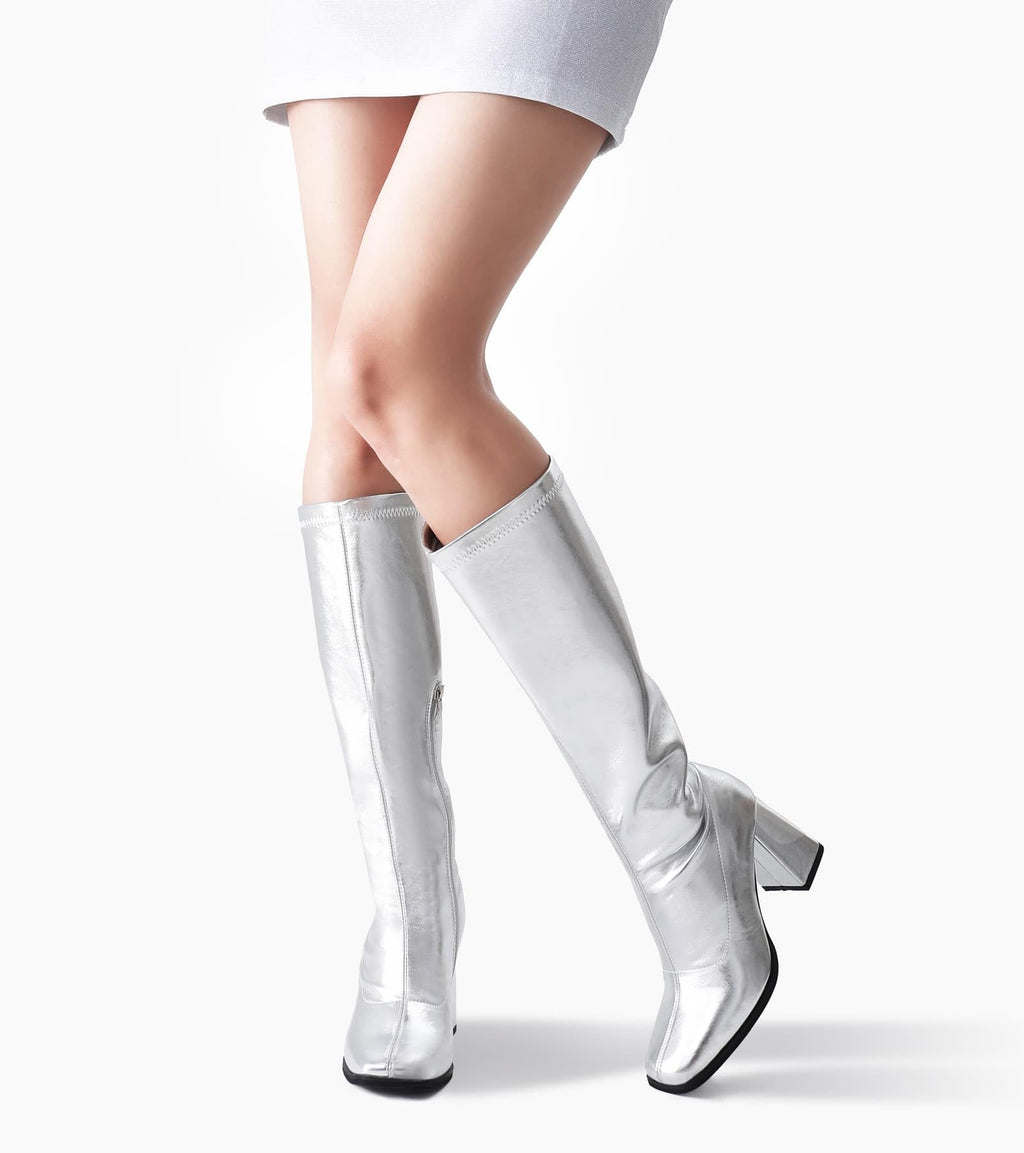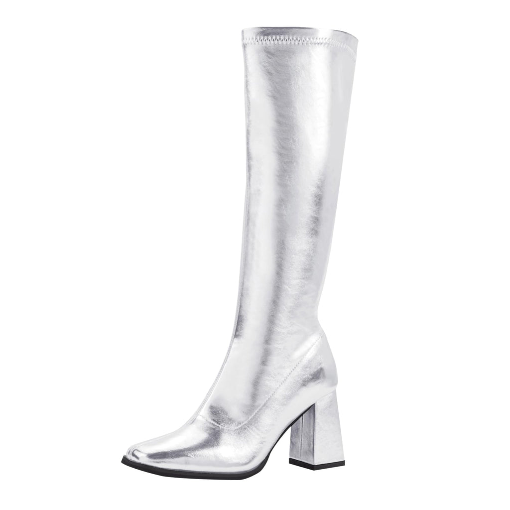 SIZE: 41 - PODAIK GoGo Boots for Women Knee High Boots Chunky Block Heels Costume Party Cosplay Dress Shoes