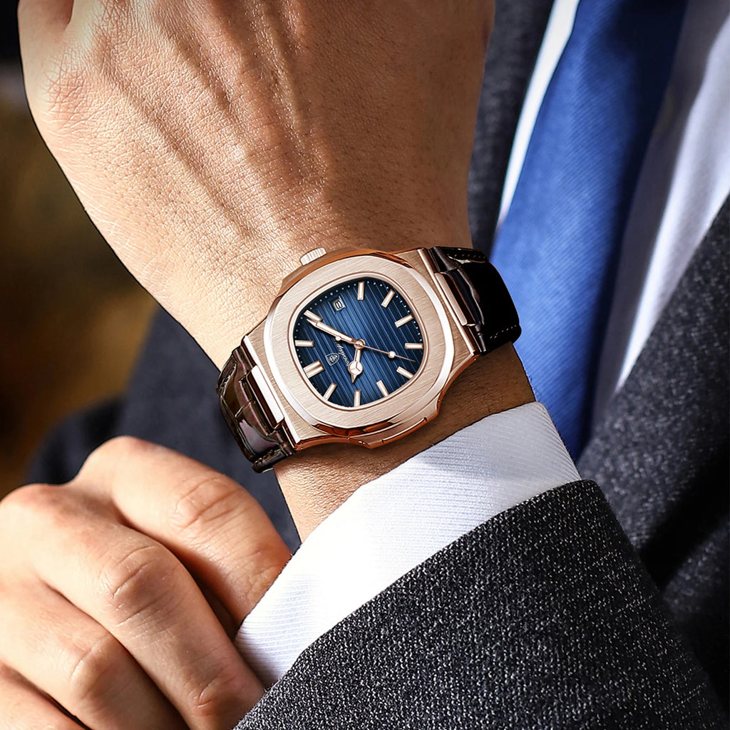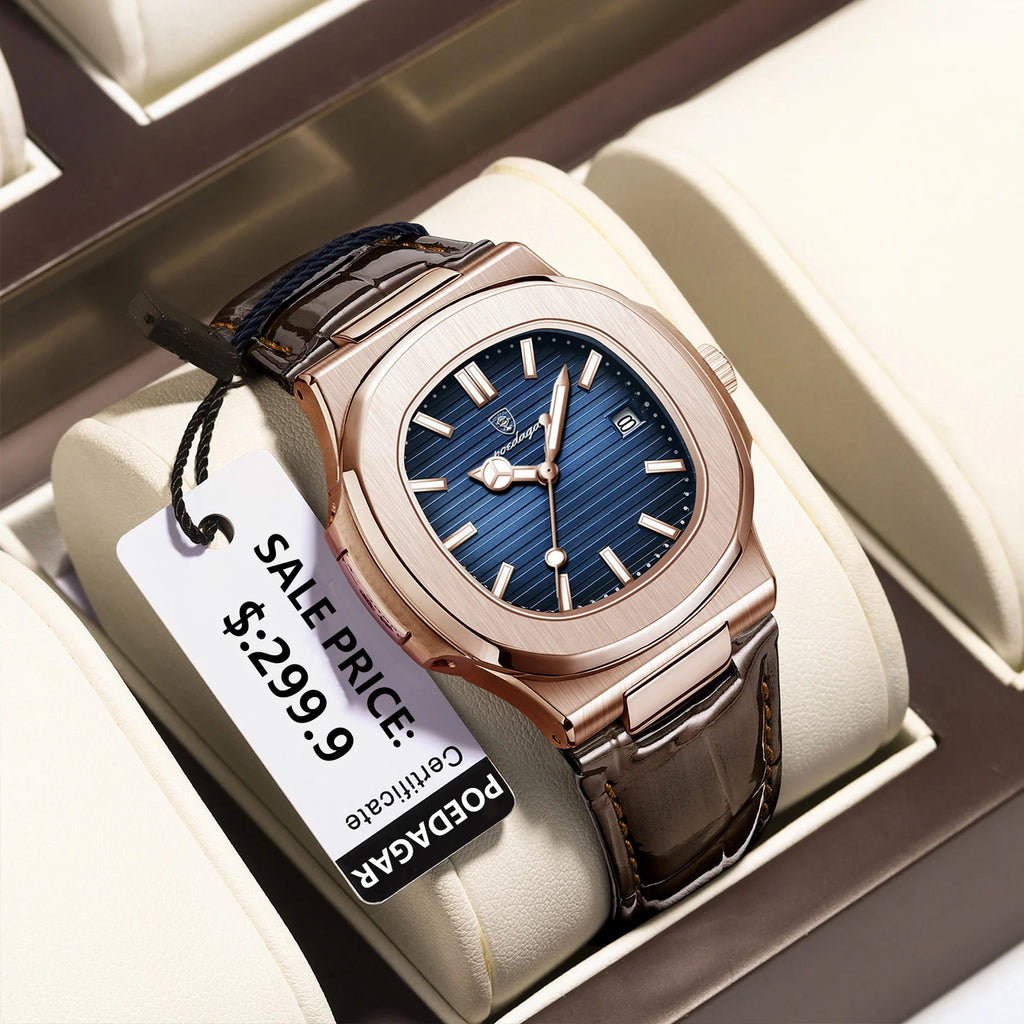 POEDAGAR Luxury Business Men's Wristwatch Date Waterproof Luminous Leather Man Watch Fashion Square Quartz Watches For Men Reloj