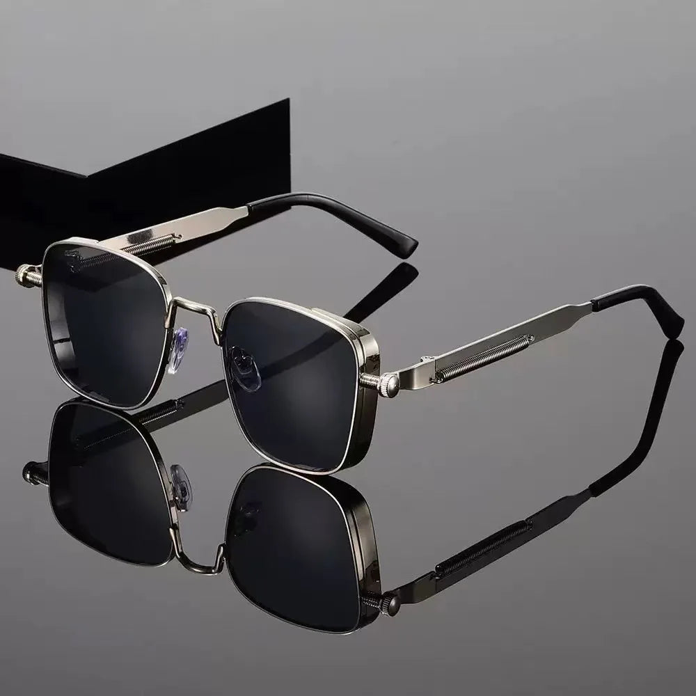 Punk Sunglasses Men Driving Sunglasses Retro Spring Leg Driving Outdoor Sports Metal Rectangular Decorative Glasses Women UV400