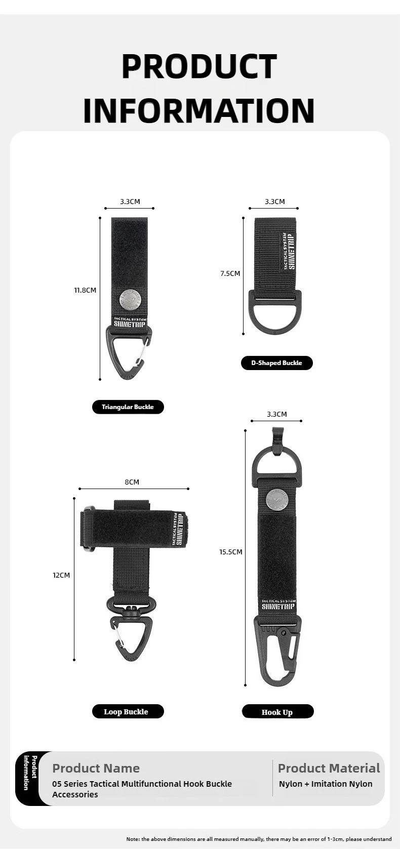 ShineTrip 05 Series Tactical Triangular Hook, Multi-functional D-shaped Hook, Velcro Design Imitated Nylon Webbing