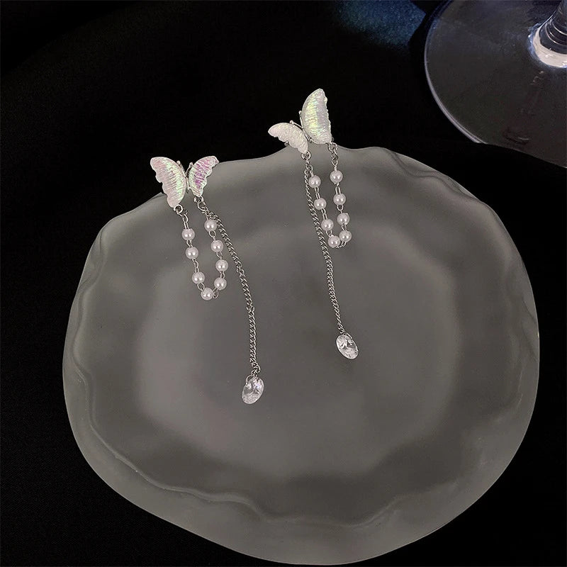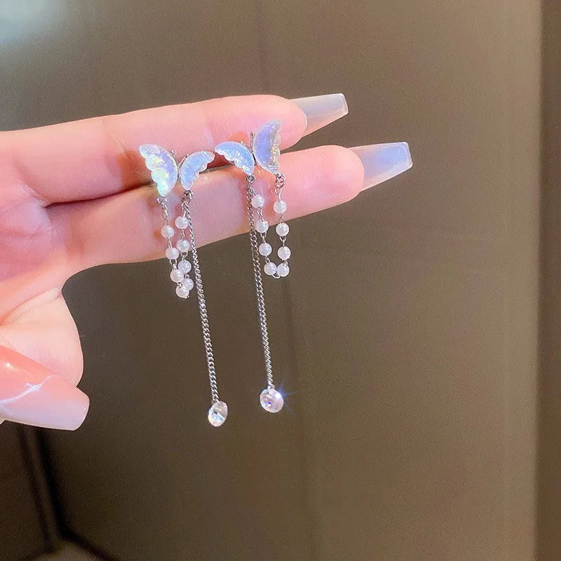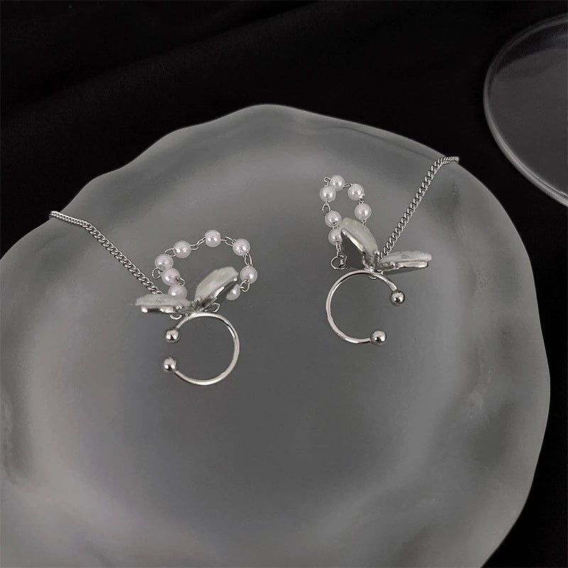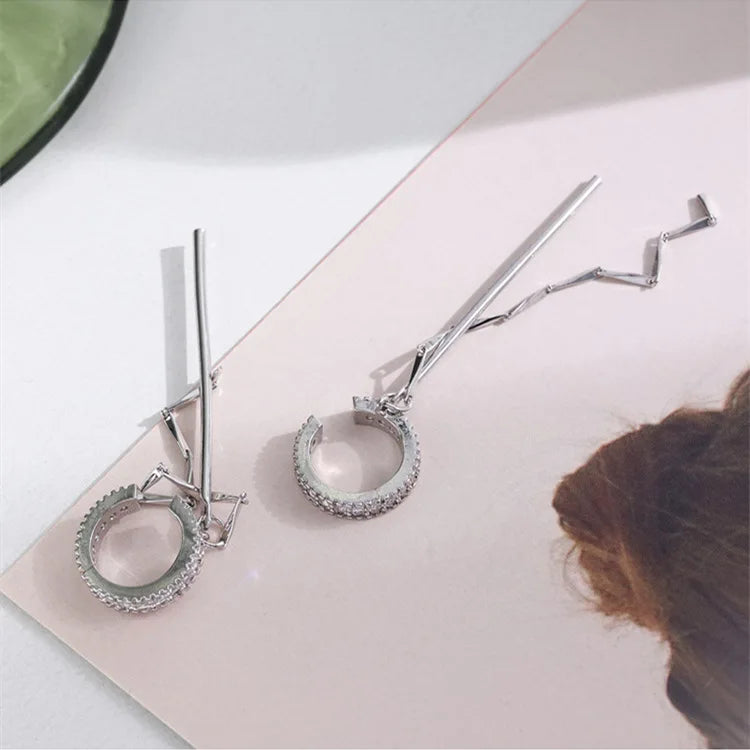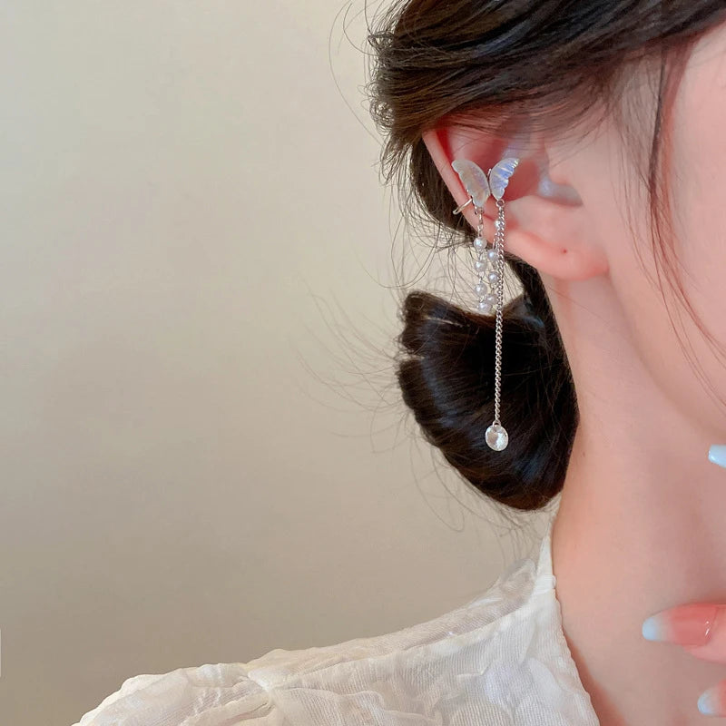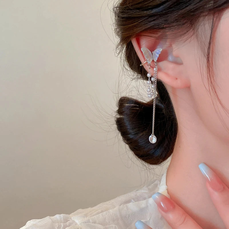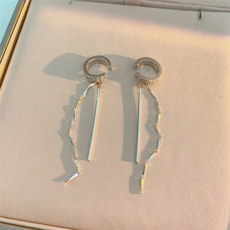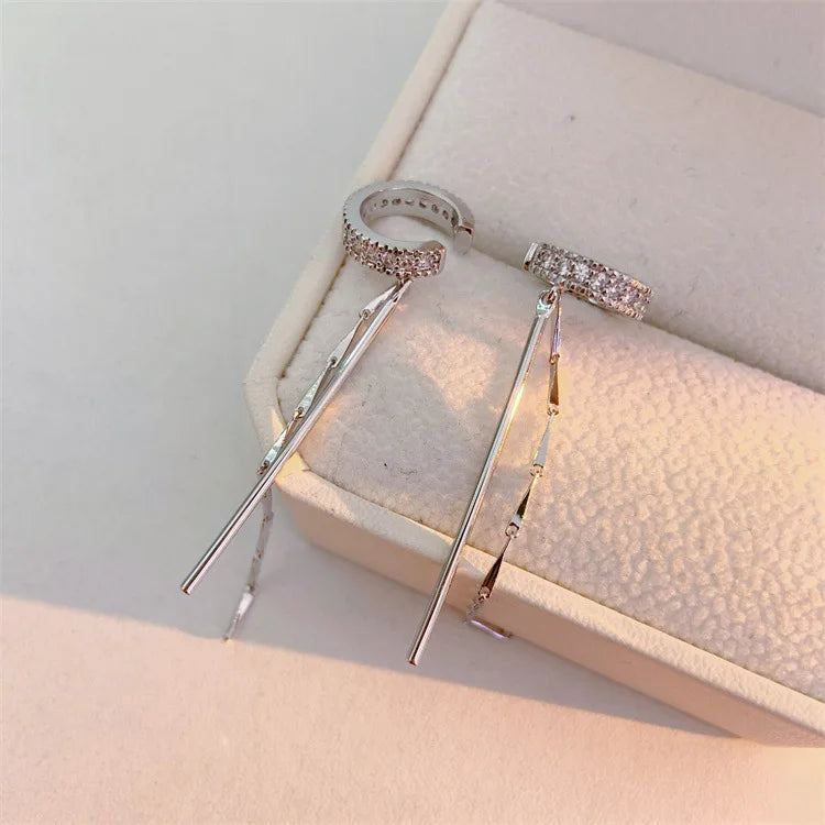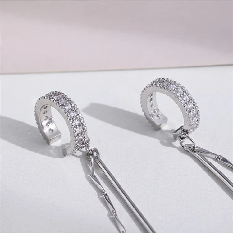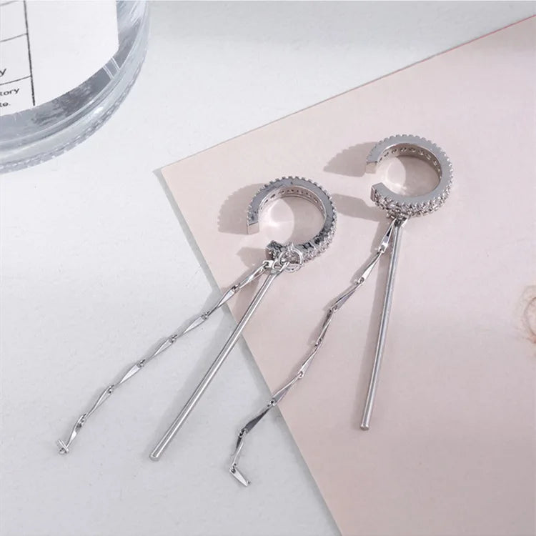 Silver Color Zircon Shining C Shape Long Tassel Ear Cuff No Piercing Earrings Female Design Simple Ear Clip Party Jewelry