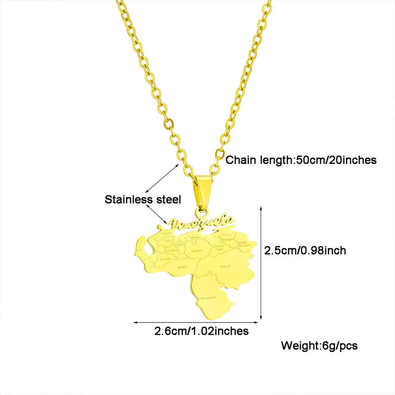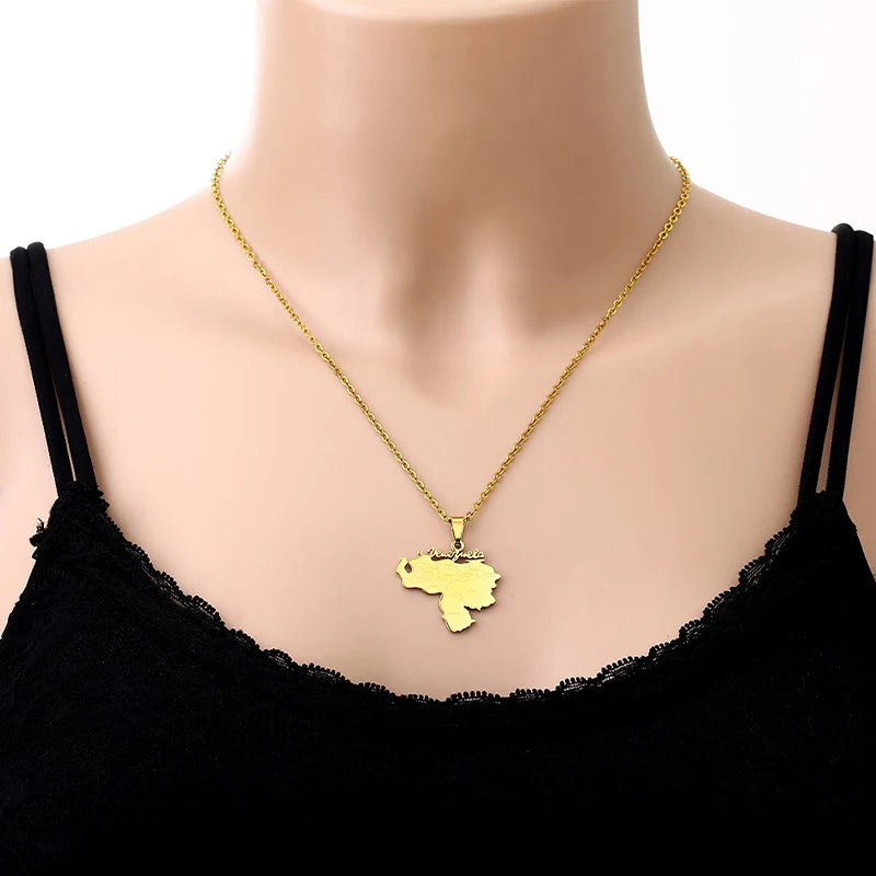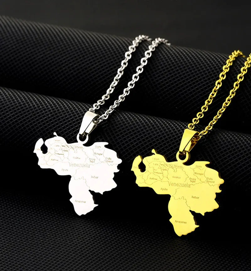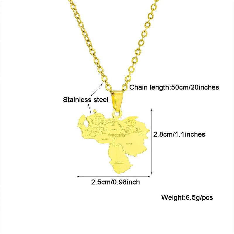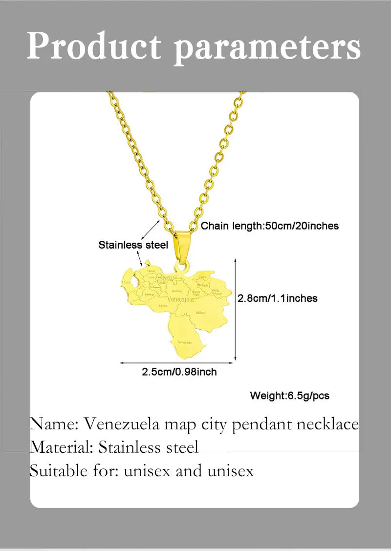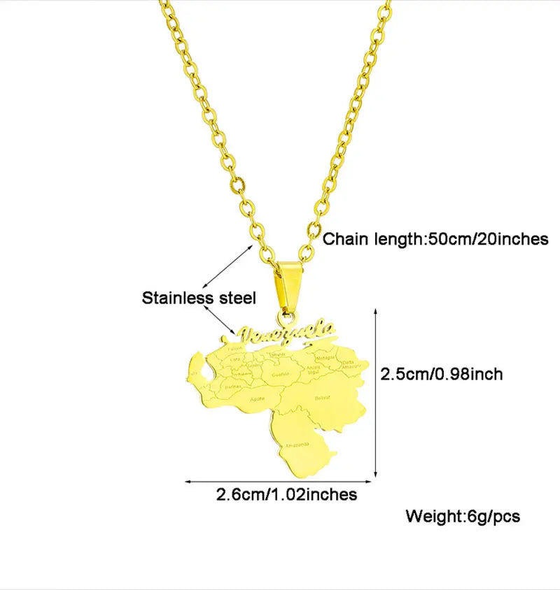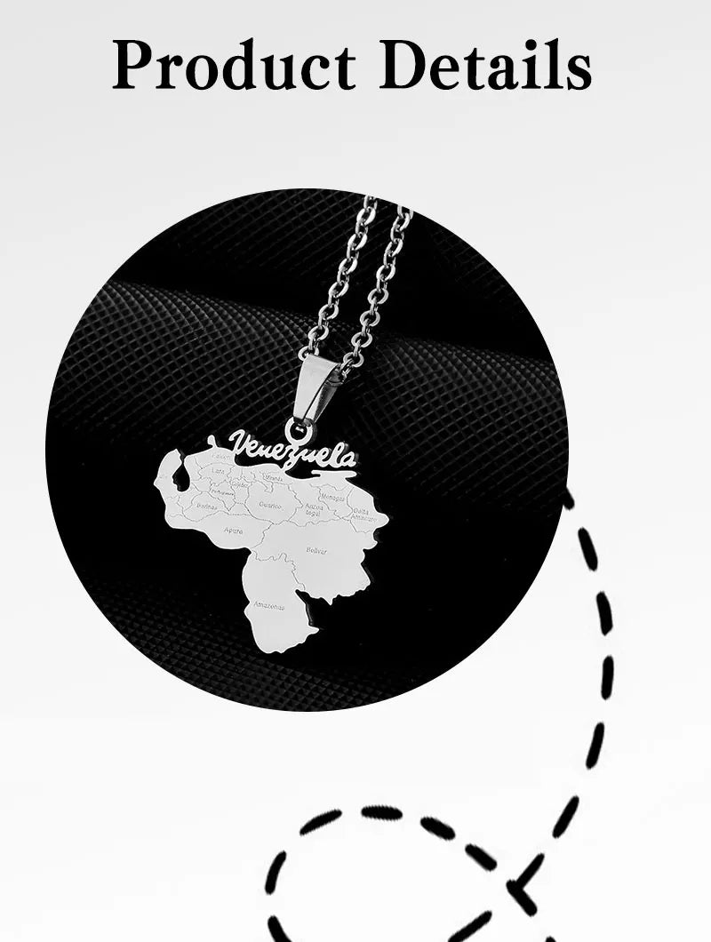 Stainless Steel Venezuela Map City Pendant Necklace Unisex Couple Ethnic Patriotic Jewelry Gift Hot Sale European Style