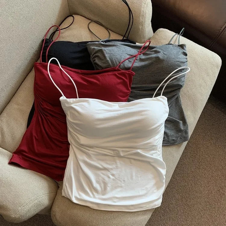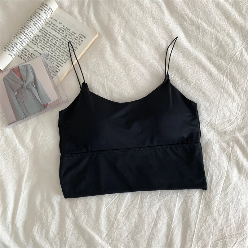 Summer Camis Tank Casual Tops Women With Built In Bra Spaghetti Strap Tanks For Woman Solid Color Female Korean Style