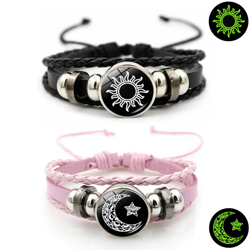 Sun Moon Couple Leather Bracelet Hot Selling Item Noctilucent Handmad Weave Bracelets Valentine's Day Couple Jewelry Gifts