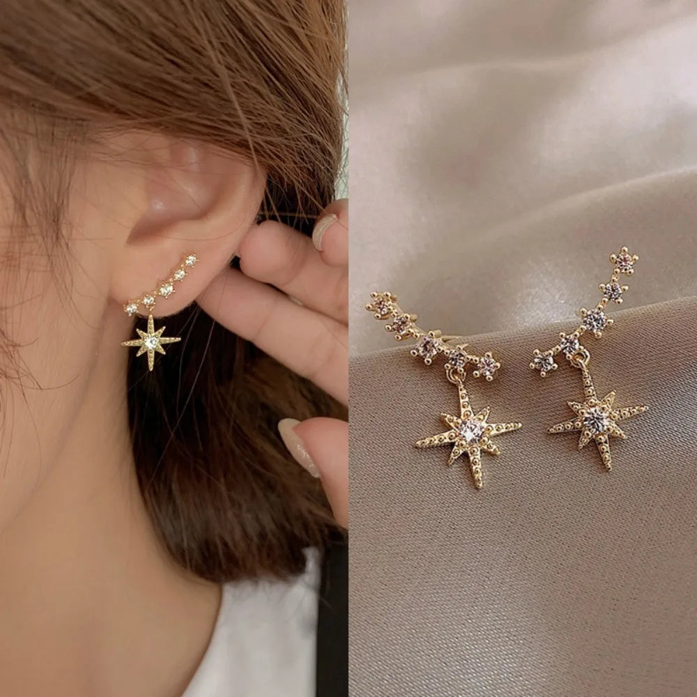 Temperament Shiny Gold Color Zircon Star Dangle Earrings for Women New Korean Fashion Charm Party Stud Jewelry Accessories Gift