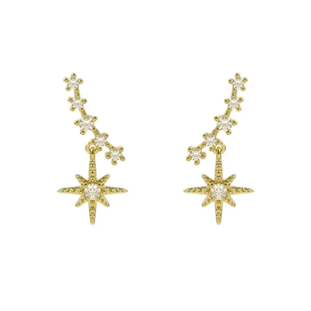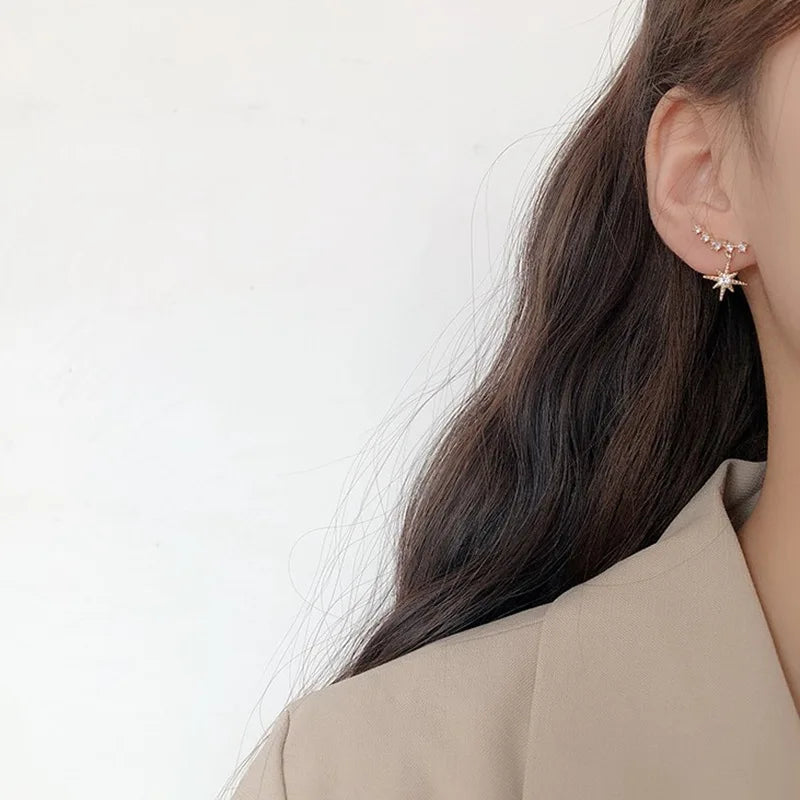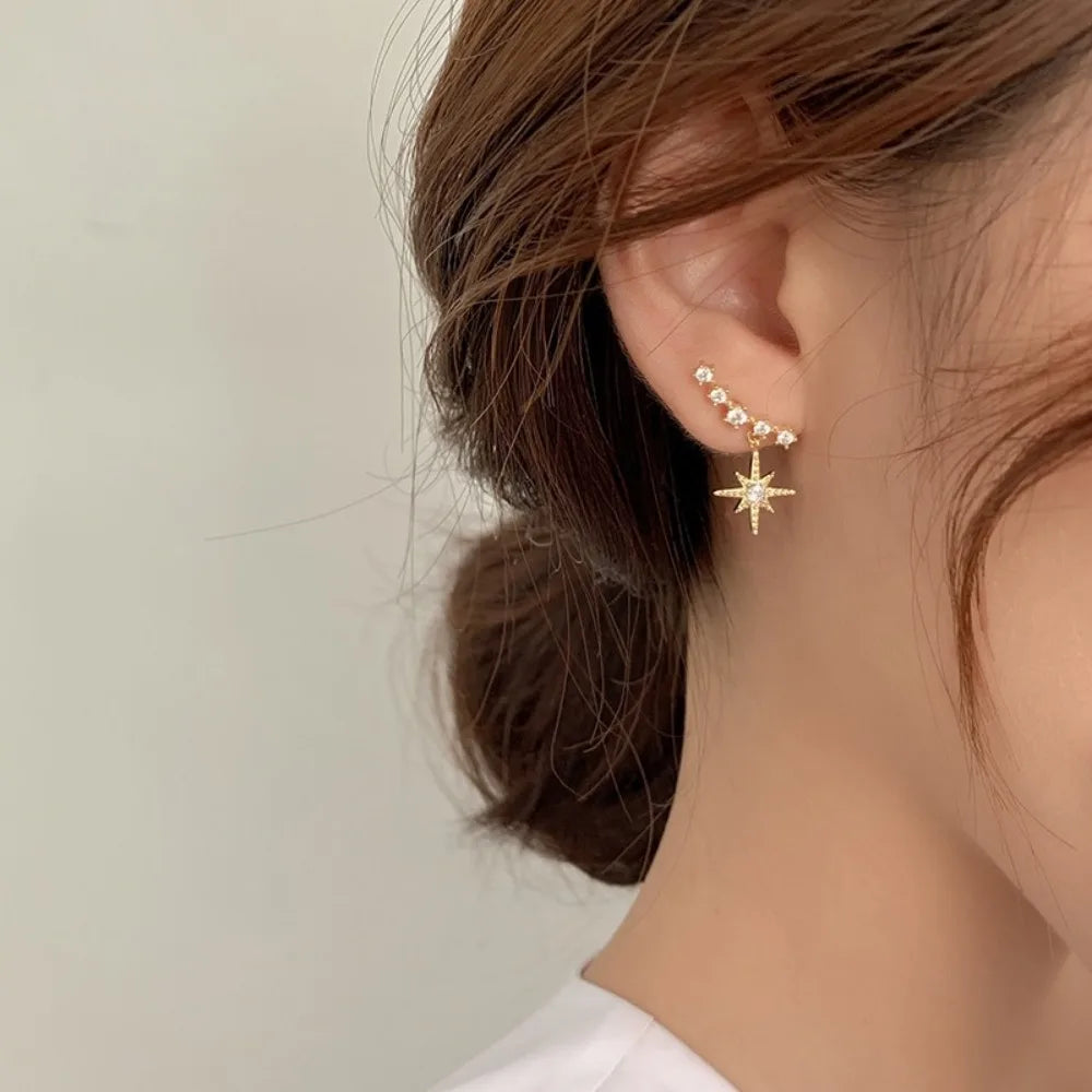 Temperament Shiny Gold Color Zircon Star Dangle Earrings for Women New Korean Fashion Charm Party Stud Jewelry Accessories Gift