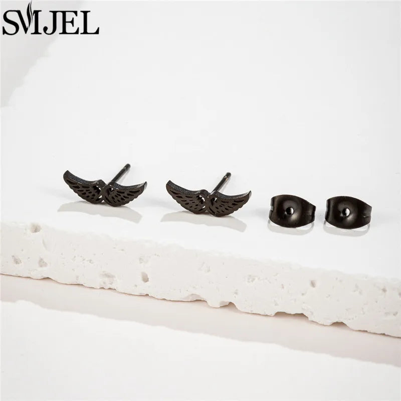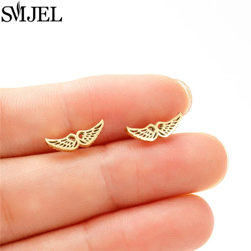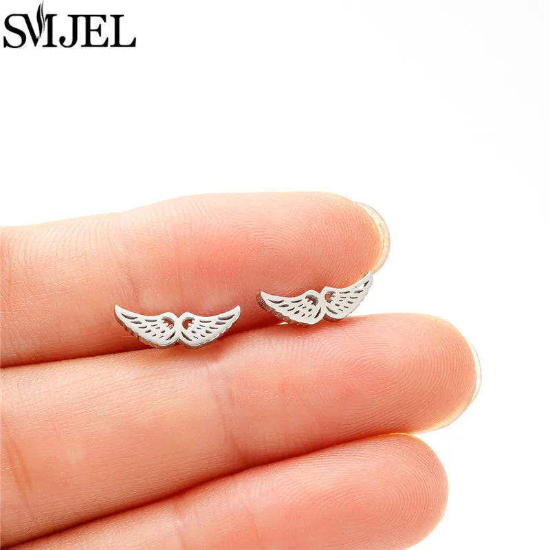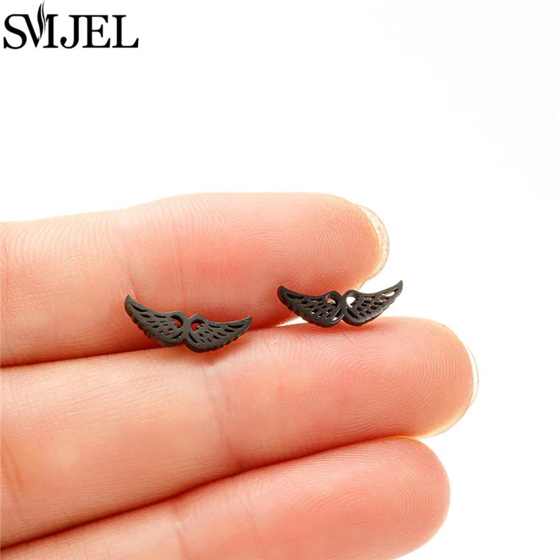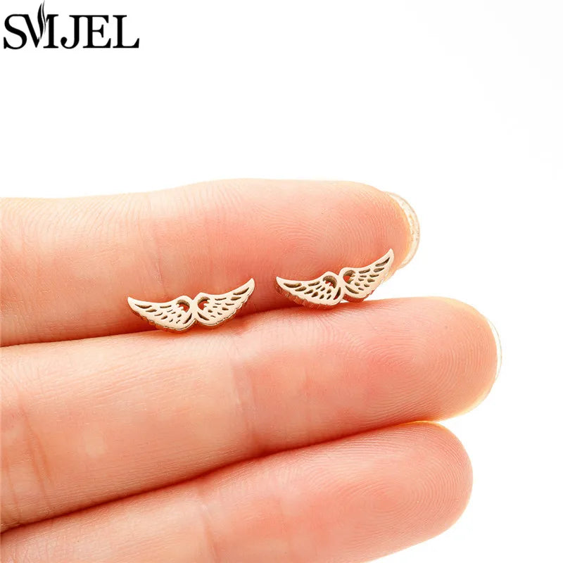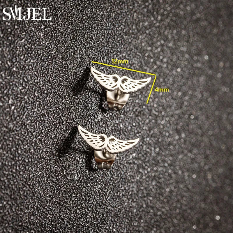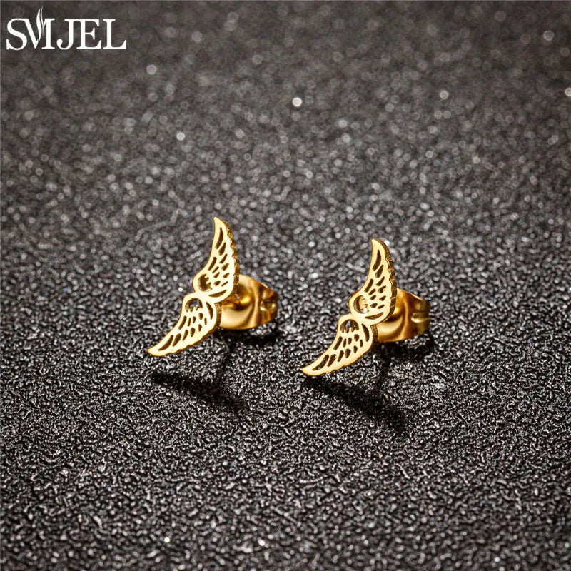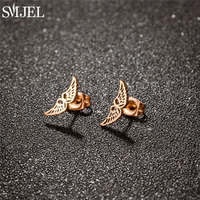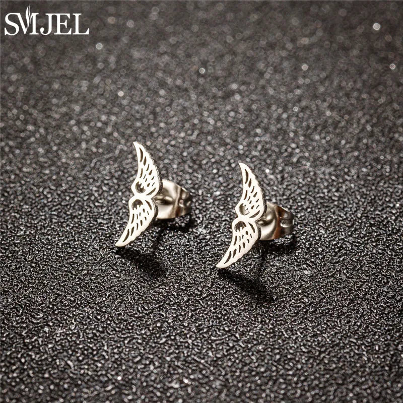 Vintage Small Angel Wings Earrings for Women Retro Hollowed-out Feather Ear Studs Girls Party Jewelry Oorbellen