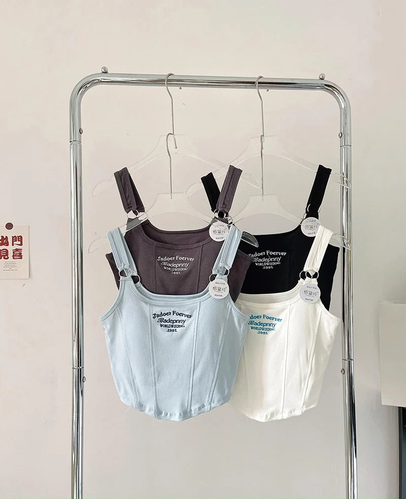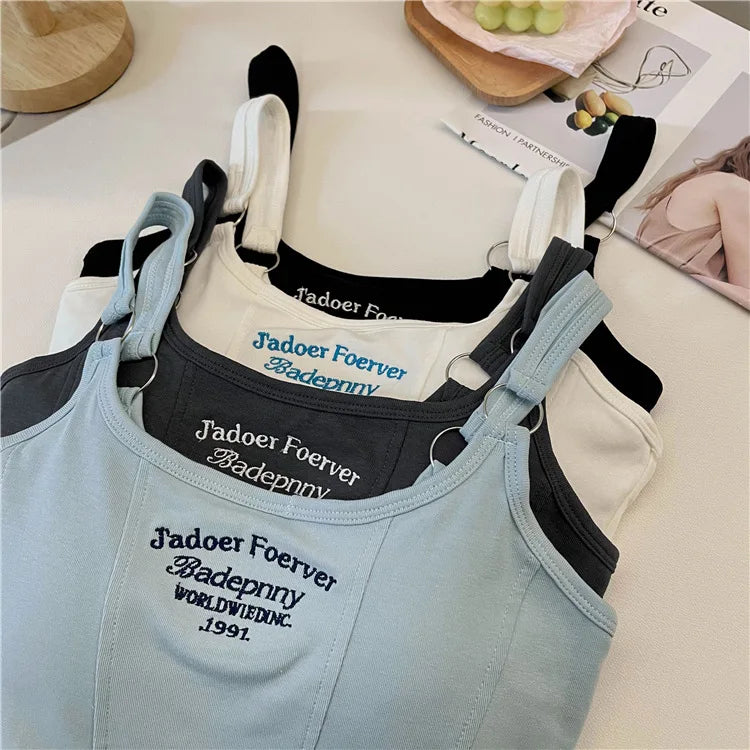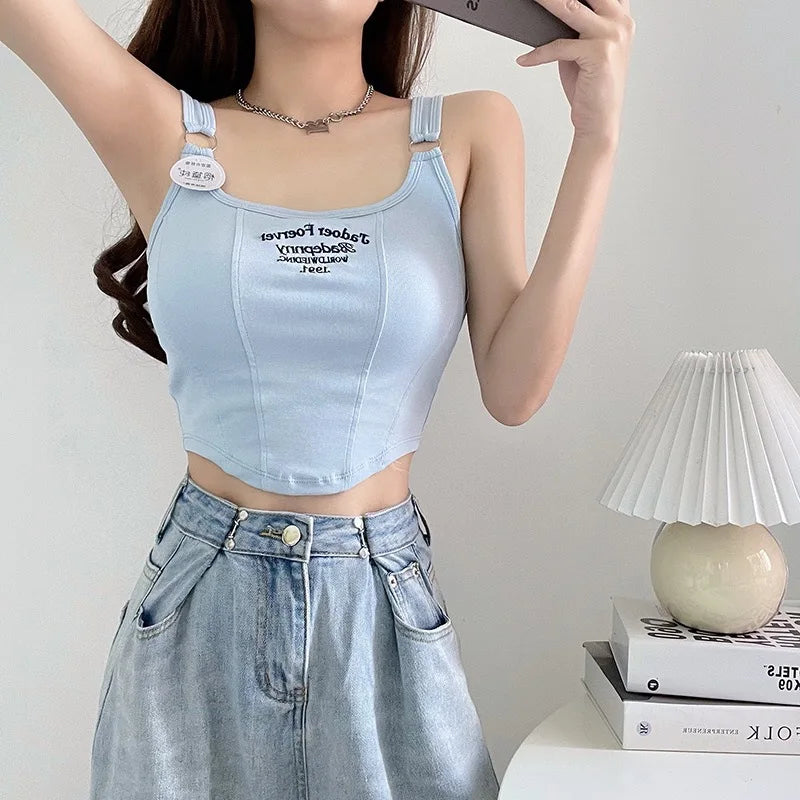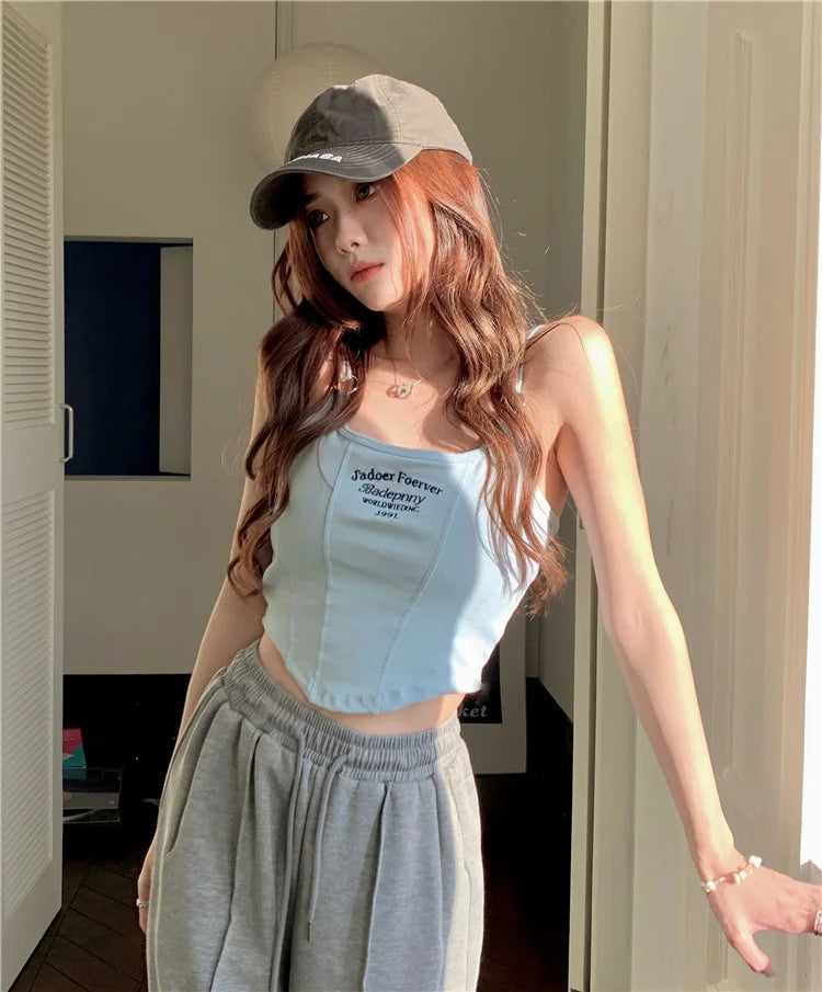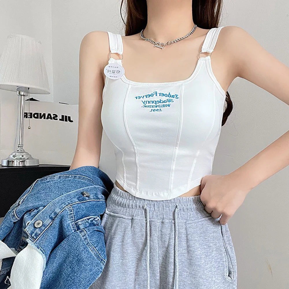 Women Crop Top Summer Y2K Lrregular Hem Slim Tank Tops Casual Sexy Female White Streetwear Letter Tank Tops With Pad Woman
