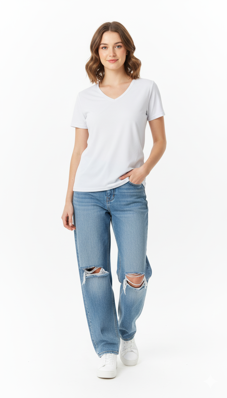 WOMEN'S LIGHT BLUE MESH T SHIRT V NECK